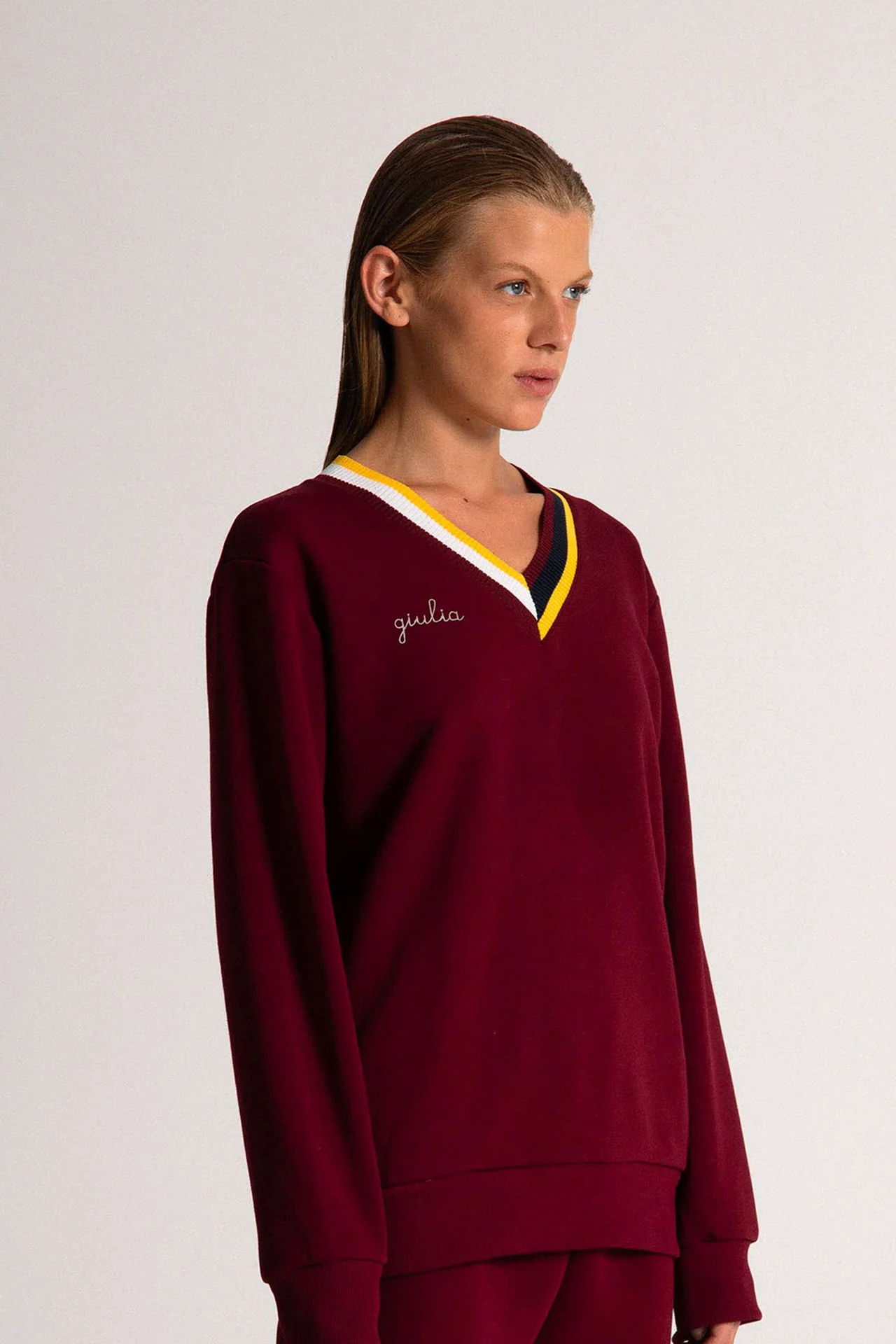 Felpa con Collo a V – Bordeaux