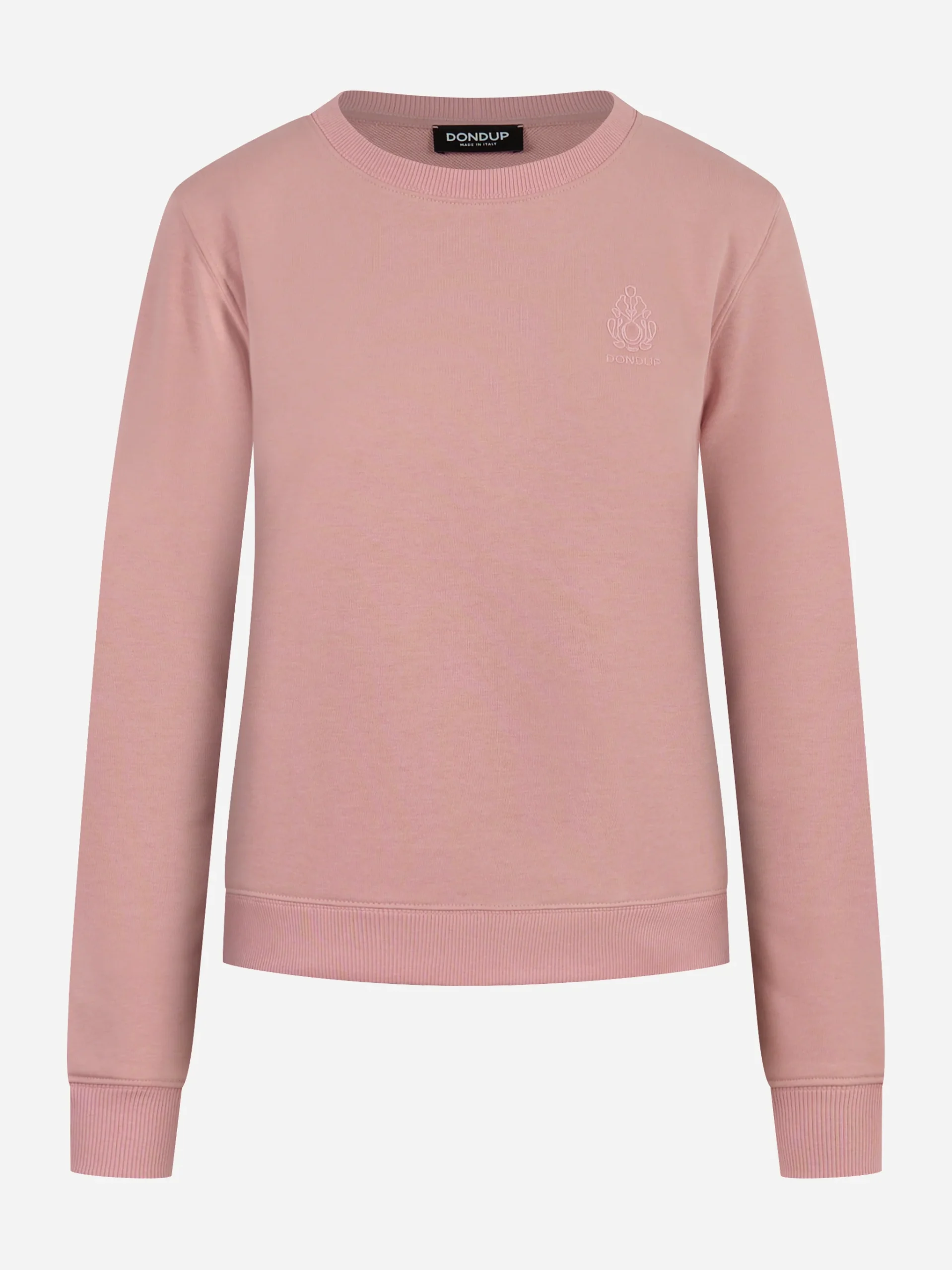 ITEM INFO Felpa girocollo slim color Rosa Logo ricamato tono su tono sul petto Maniche lunghe con polsini a coste Linea aderente dal fit moderno Collo e orlo rifiniti in maglia elastica Ideale per look casual e sportivi Composizione: 88% Cotone, 12% Poliestere Made in Italy