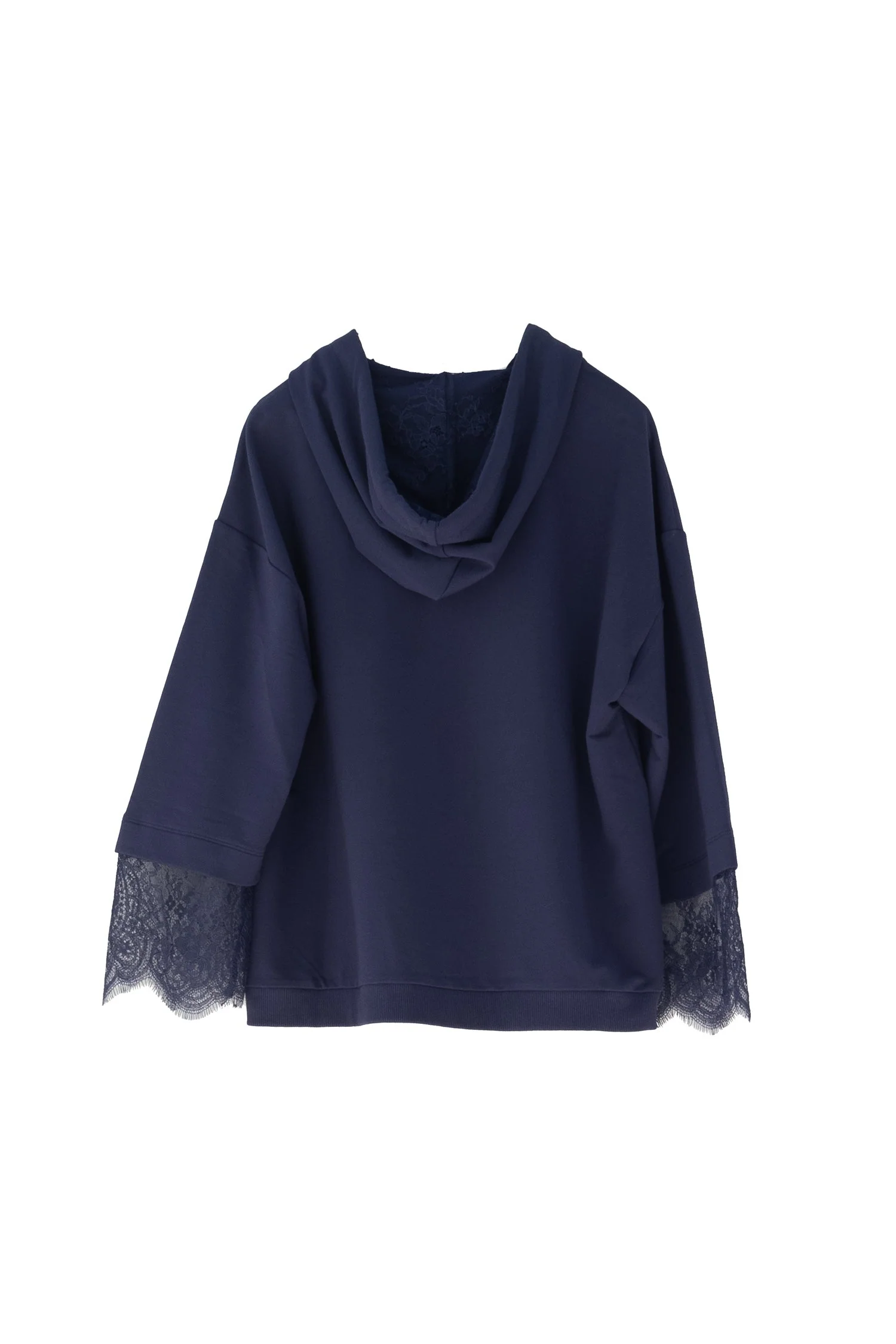 Felpa regular lunga blu con pizzo sulle maniche