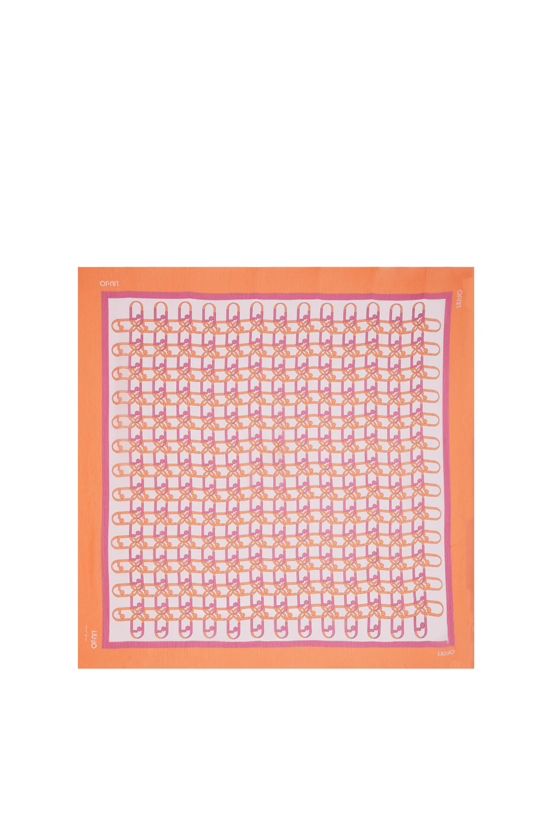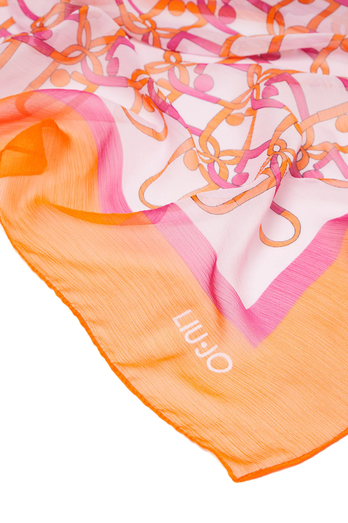 Foulard arancione ecosostenibile in chiffon con stampa cinte e catenine