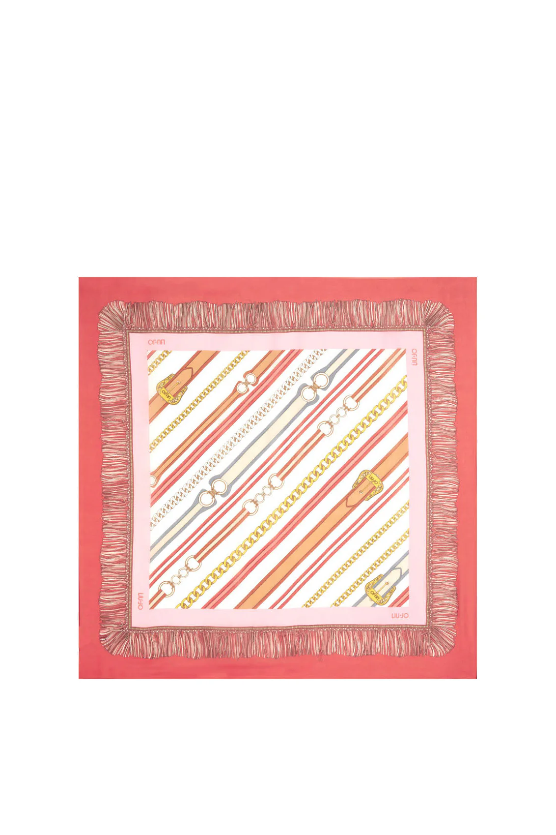 Foulard arancione ecosostenibile in chiffon con stampa cinte e catenine