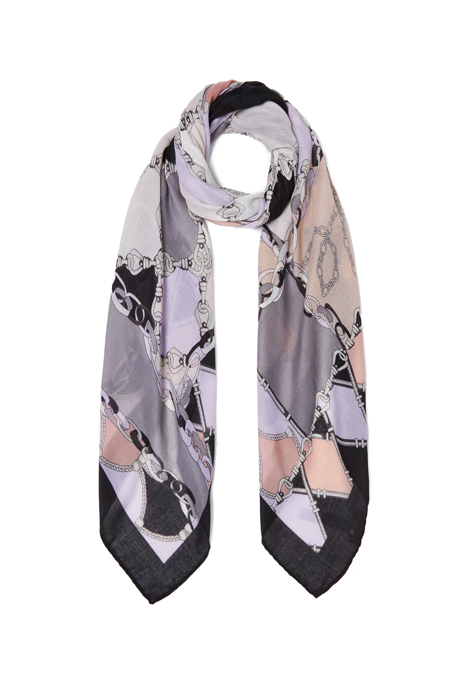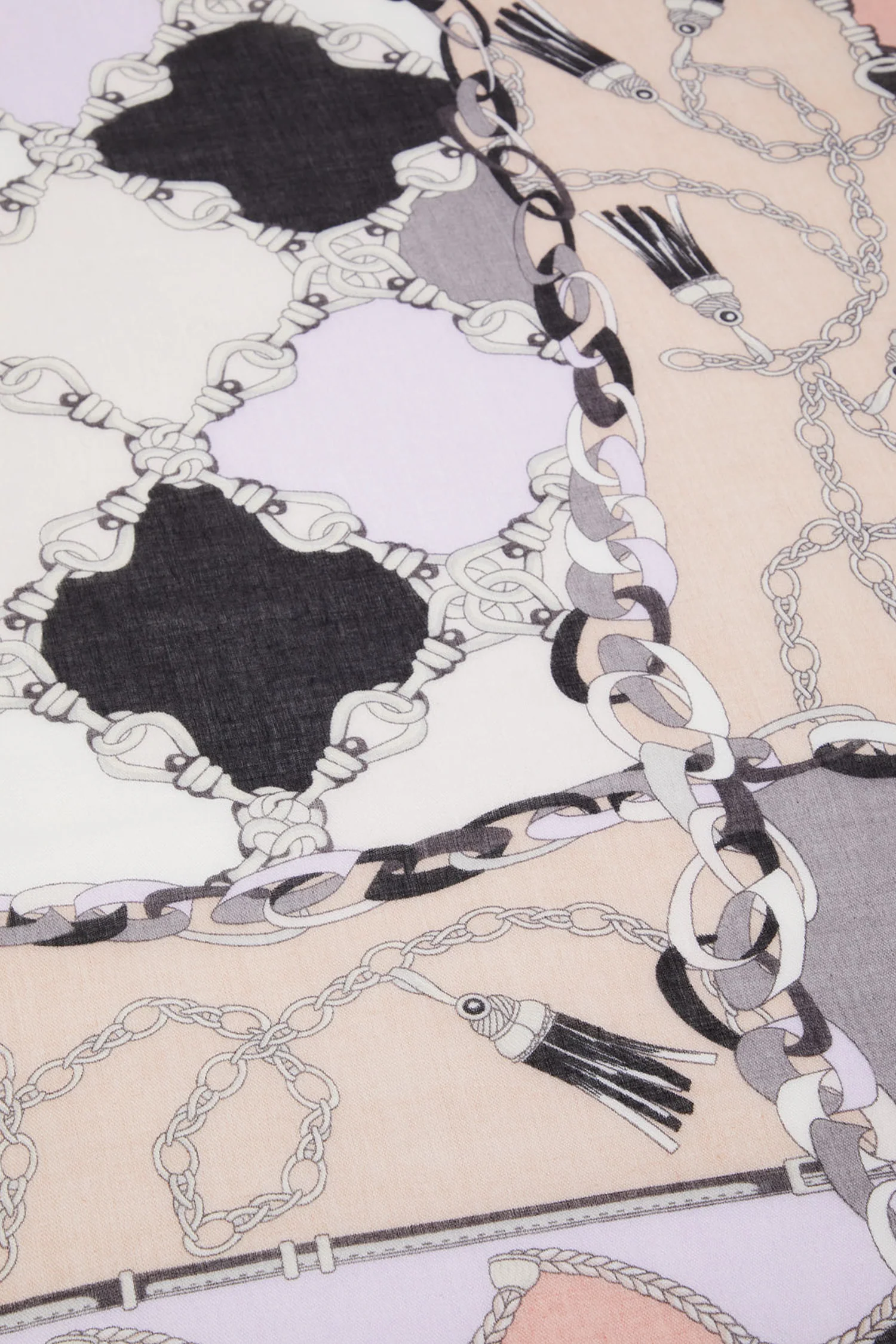 Foulard arancione ecosostenibile in chiffon con stampa cinte e catenine