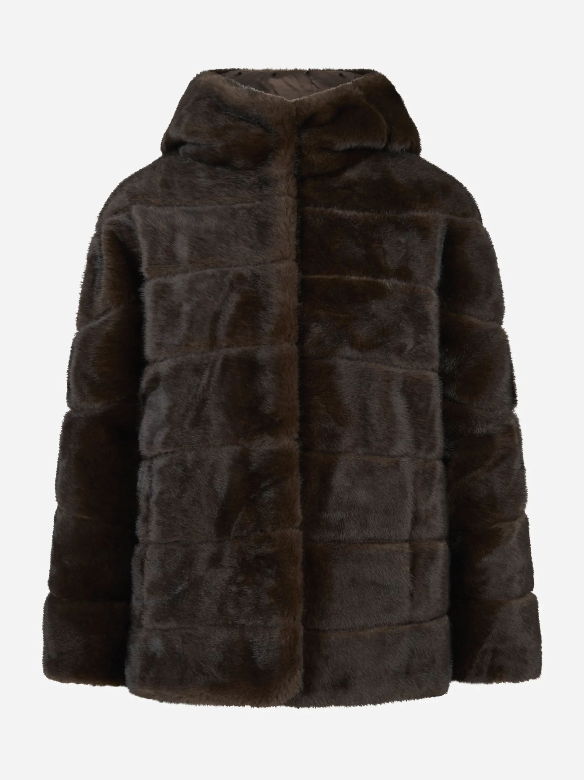 - Giacca con cappuccio marrone in ecofur