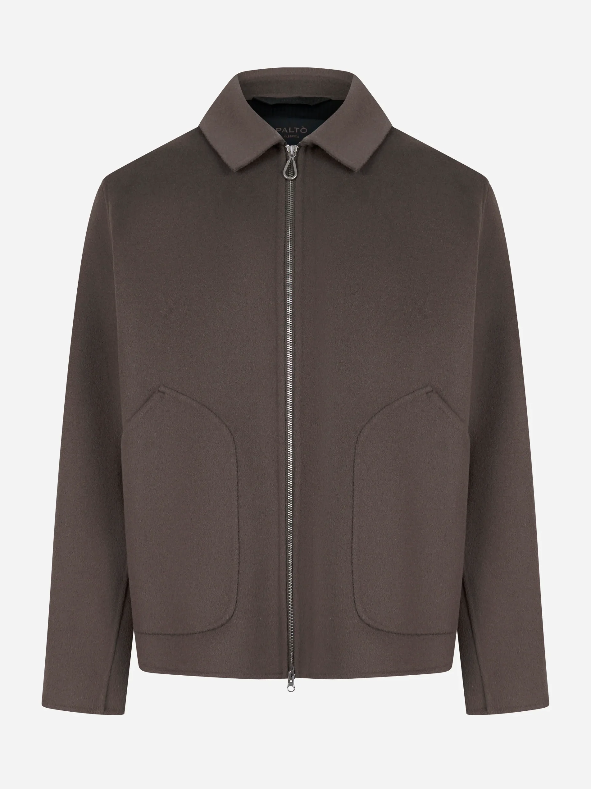 Giacca con zip centrale in double di lana Grigia