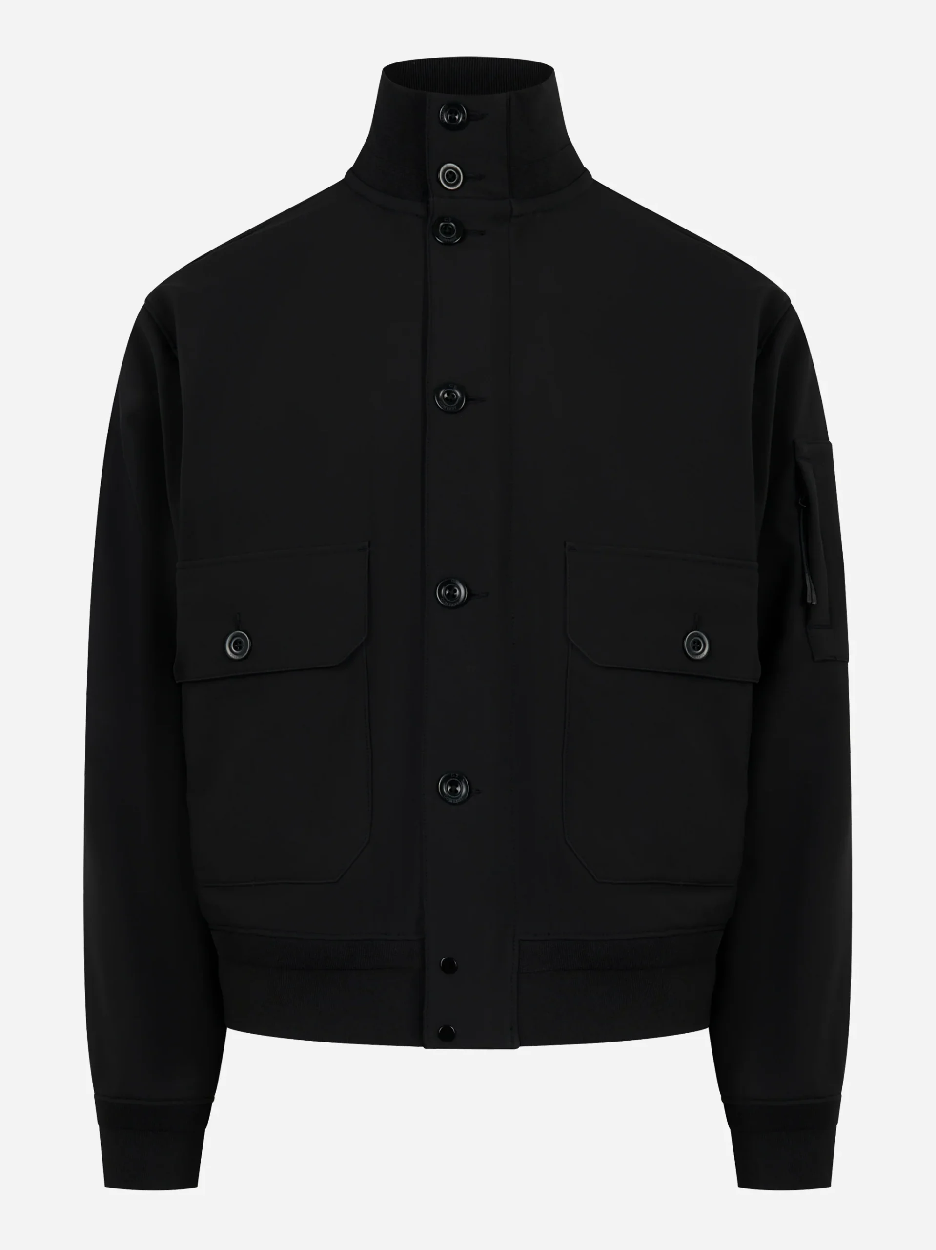 ITEM INFO Giacca tecnica in CP Shell nera Chiusura frontale con zip e bottoni Tasche applicate sul davanti Collo alto con bottoni a pressione Polsini e fondo rifiniti in maglia Linea funzionale e contemporanea Composizione: 94% Poliestere, 6% Elastan Made in Italy TAGLIA E VESTIBILITÀ ▾ Model wears size M Model Height 187 cm Bust […]