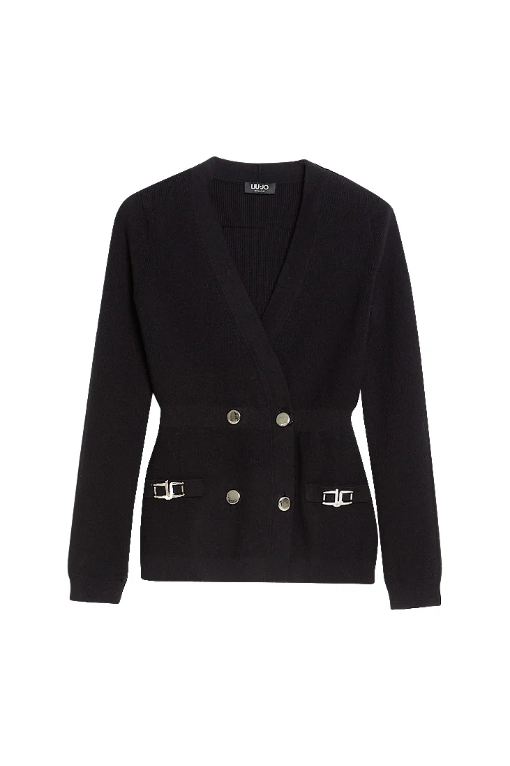 Giacca doppiopetto nera ecosostenibile con logo gioiello