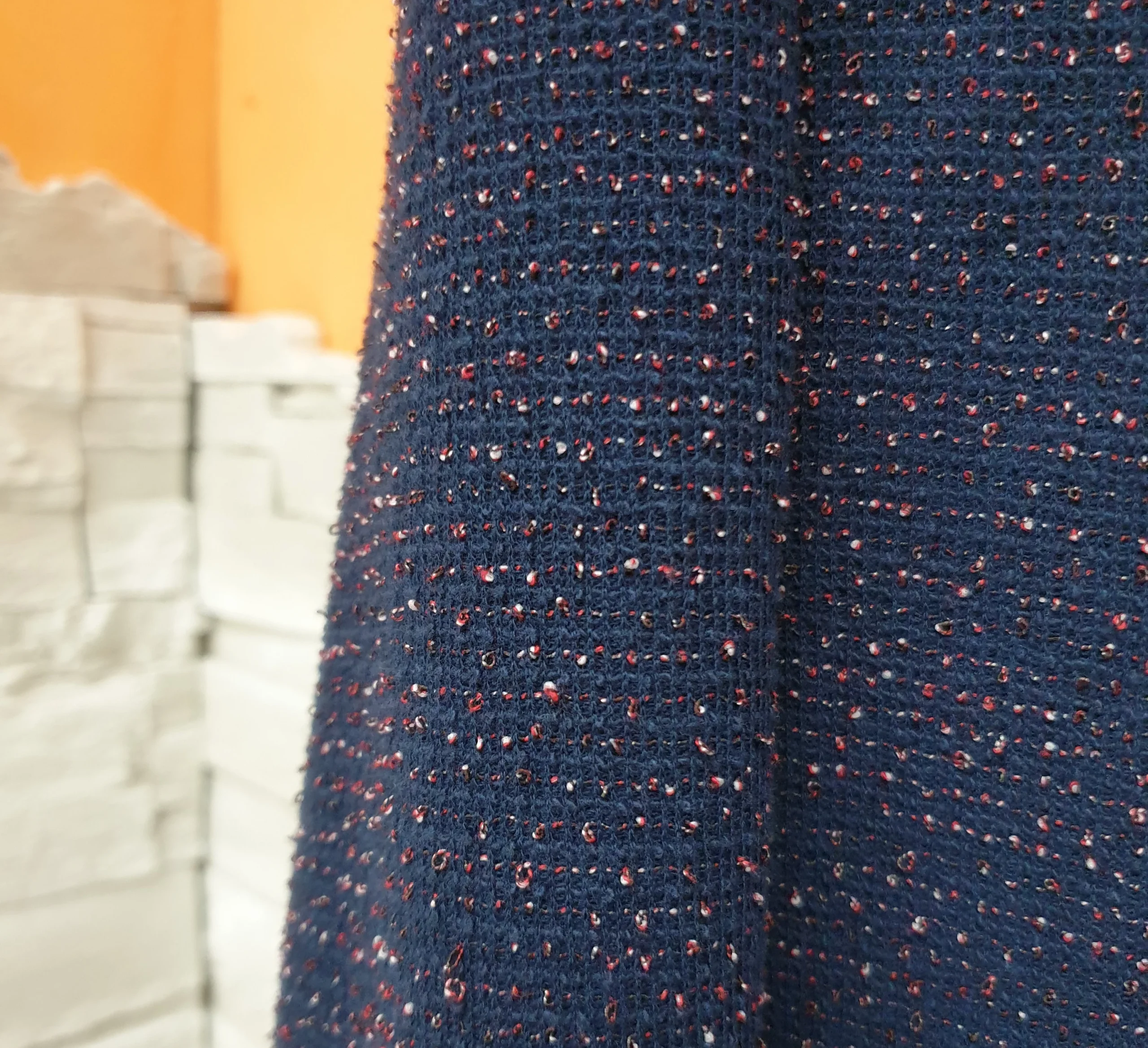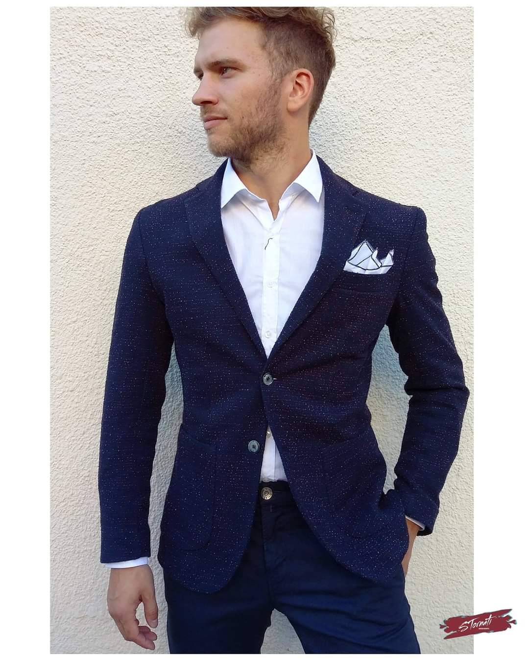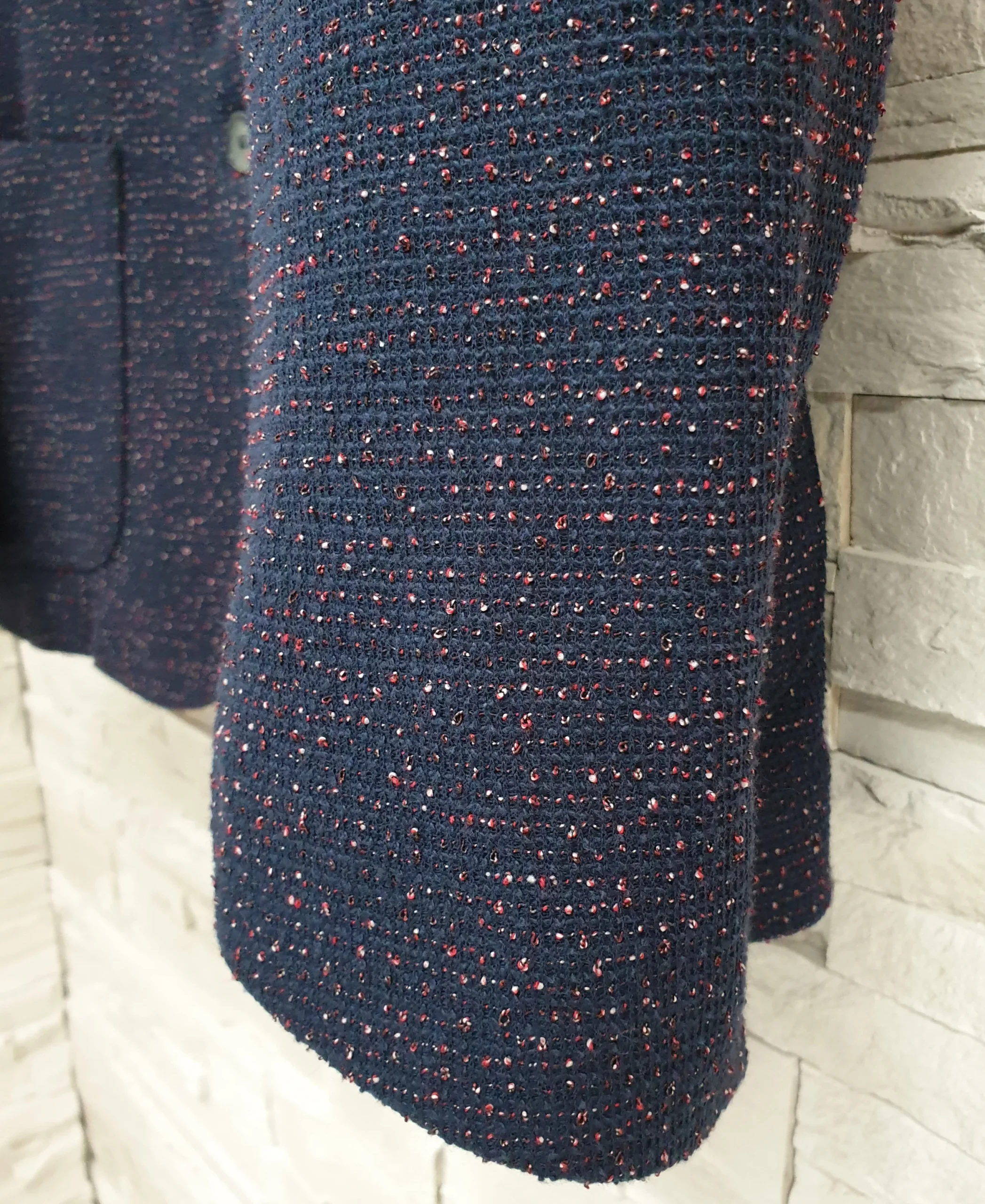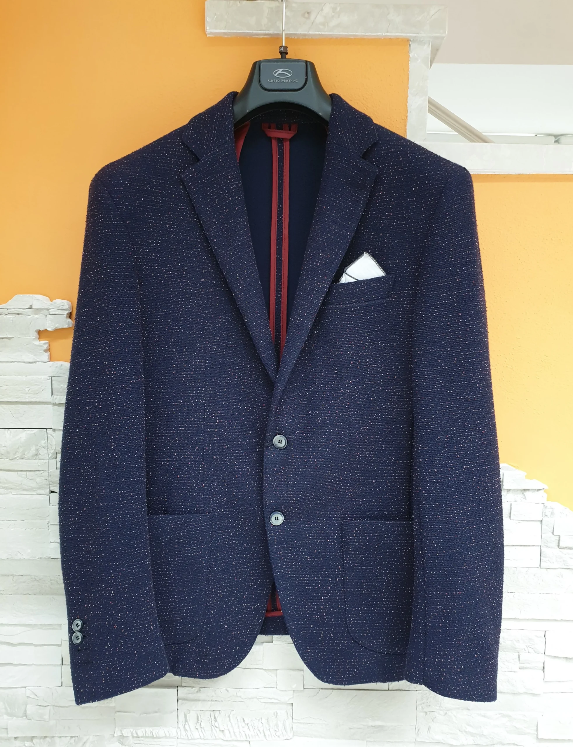 Giacca blu slim effetto graffiato con fili in rilievo. Composizione: 60% Poliestere 40% Cotone MADE IN ITALY