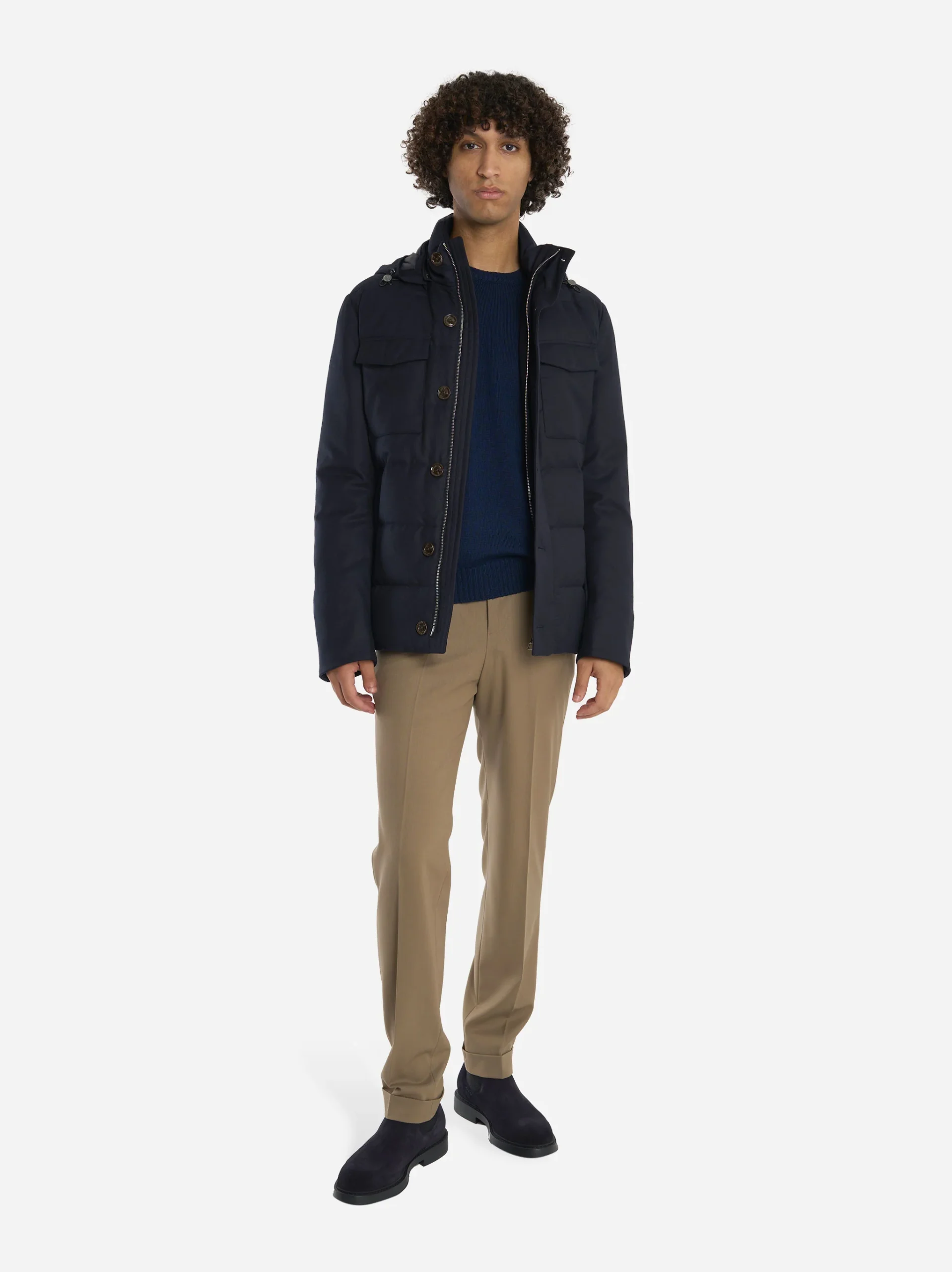 ITEM INFO Giacca in lana con cappuccio Blu Chiusura frontale con bottoni Cappuccio regolabile Tasche laterali a filetto Linea moderna e versatile Perfetta per la stagione fredda Composizione: Lana Made in Italy TAGLIA E VESTIBILITÀ ▾ Model wears size 50 Model Height 187 cm Bust 91 cm Waist 73 cm Hips 92 cm .accordion { […]