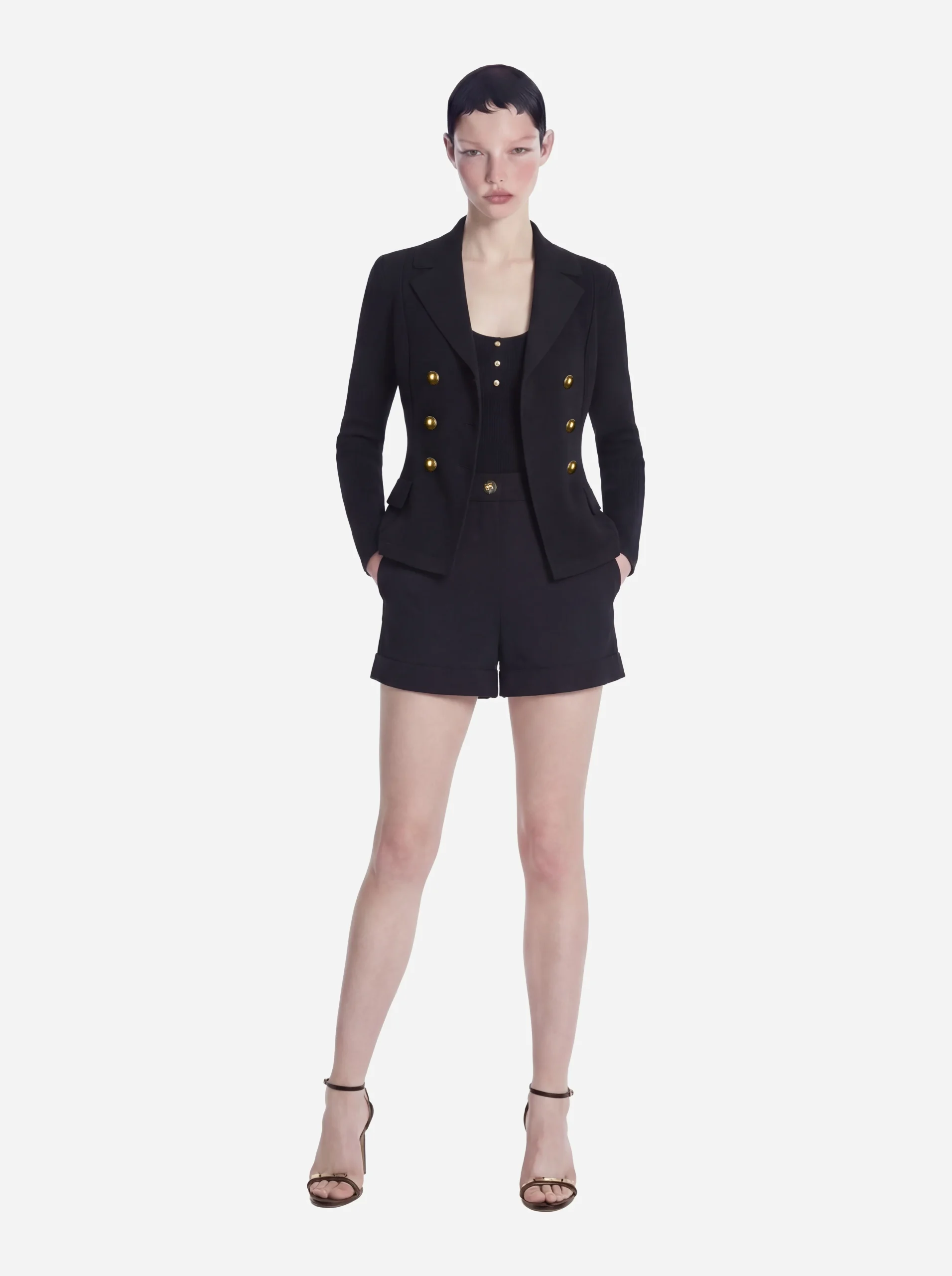 Giacca in maglia nera con bottoni gioiello