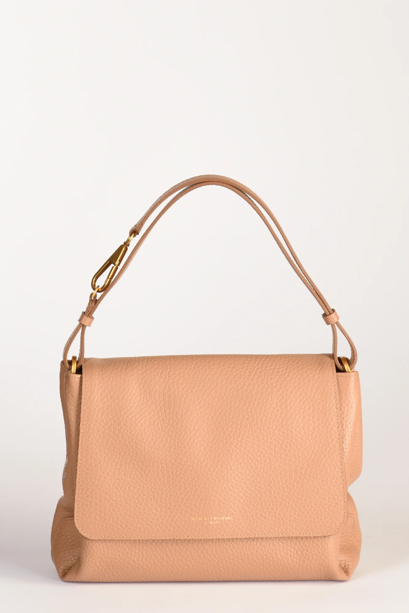 Borsa A Spalla Realizzata In Pelle Martellata, Tracolla Allungabile Con Moschettone, Monoscomparto, Dotata Di Due Tasche Multiuso Di Cui Una Zippata, Chiusa Da Patella Con Bottone Automatico, Composizione 100 Pelle, Made In Italy, Dimensioni 29x31x10