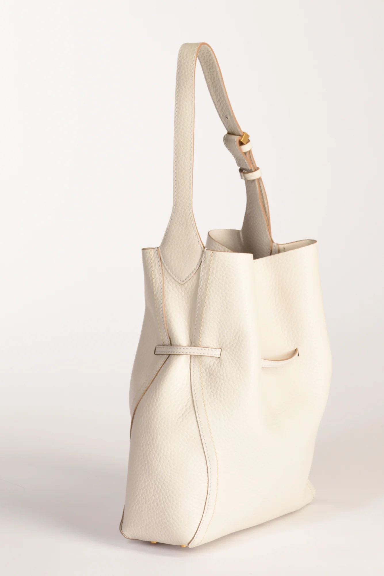 Borsa A Spalla Modello Secchiello, Realizzata In Pelle Double Grana Maxi, Rifinita Con Impunture A Contrasto, Monoscomparto, Dotata Di Pochette Amovibile, Sfoderata, Chiusa Da Magnete, Impreziosita Da Dettagli In Metallo Passantee Gemello Logato E Finalini, Composizione Pelle, Made In Italy, Dimensioni 30x34x11