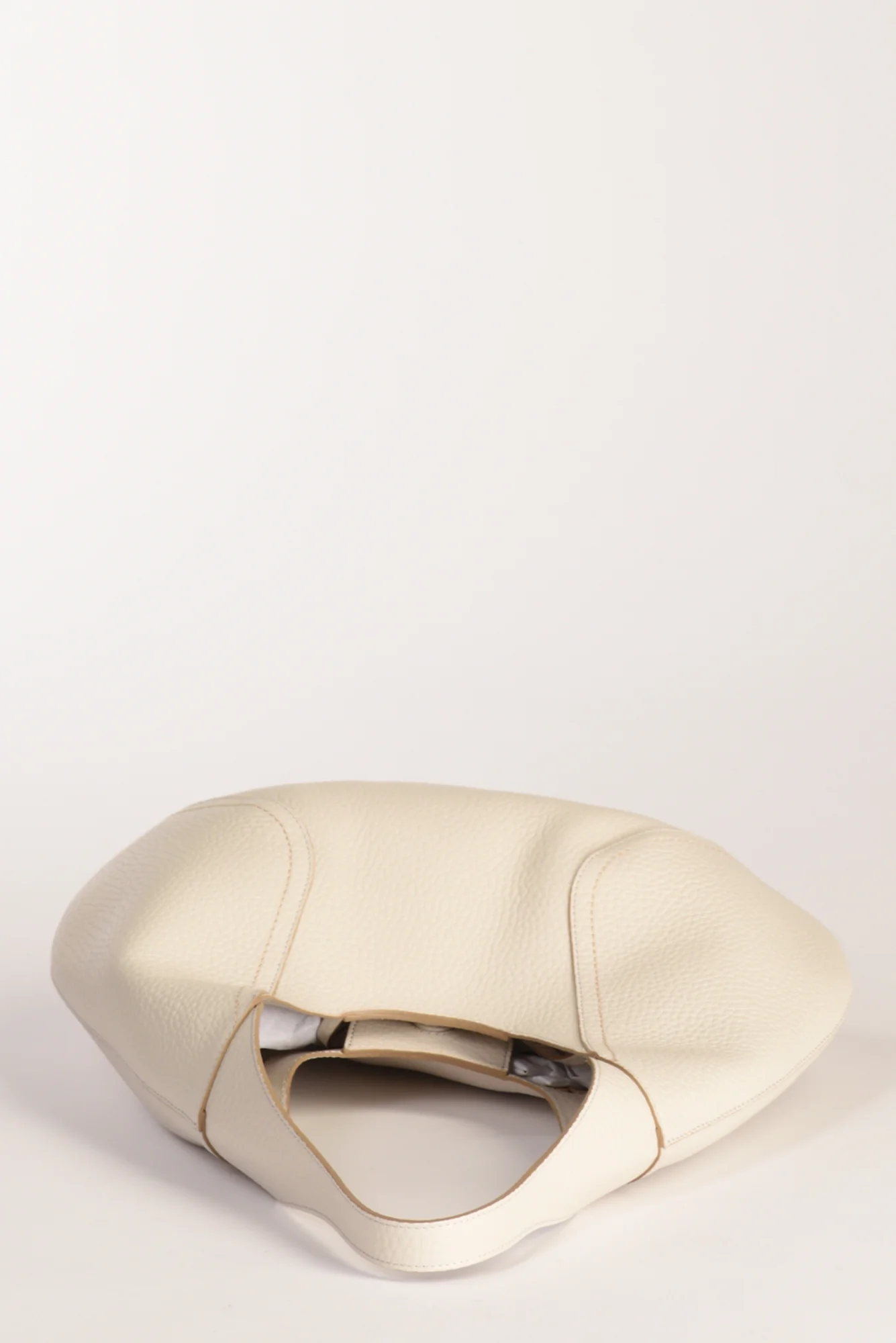 Borsa Hobo Realizzata In Pelle Martellata, Sfoderata, Chiusura Calamitata, Pochette Amovibile Abbinata, Cuciture A Rilievo E Contrasto Fronte E Retro, Dimensione Cm 50x43x12, Made In Cina, Composizione 100 Paglia