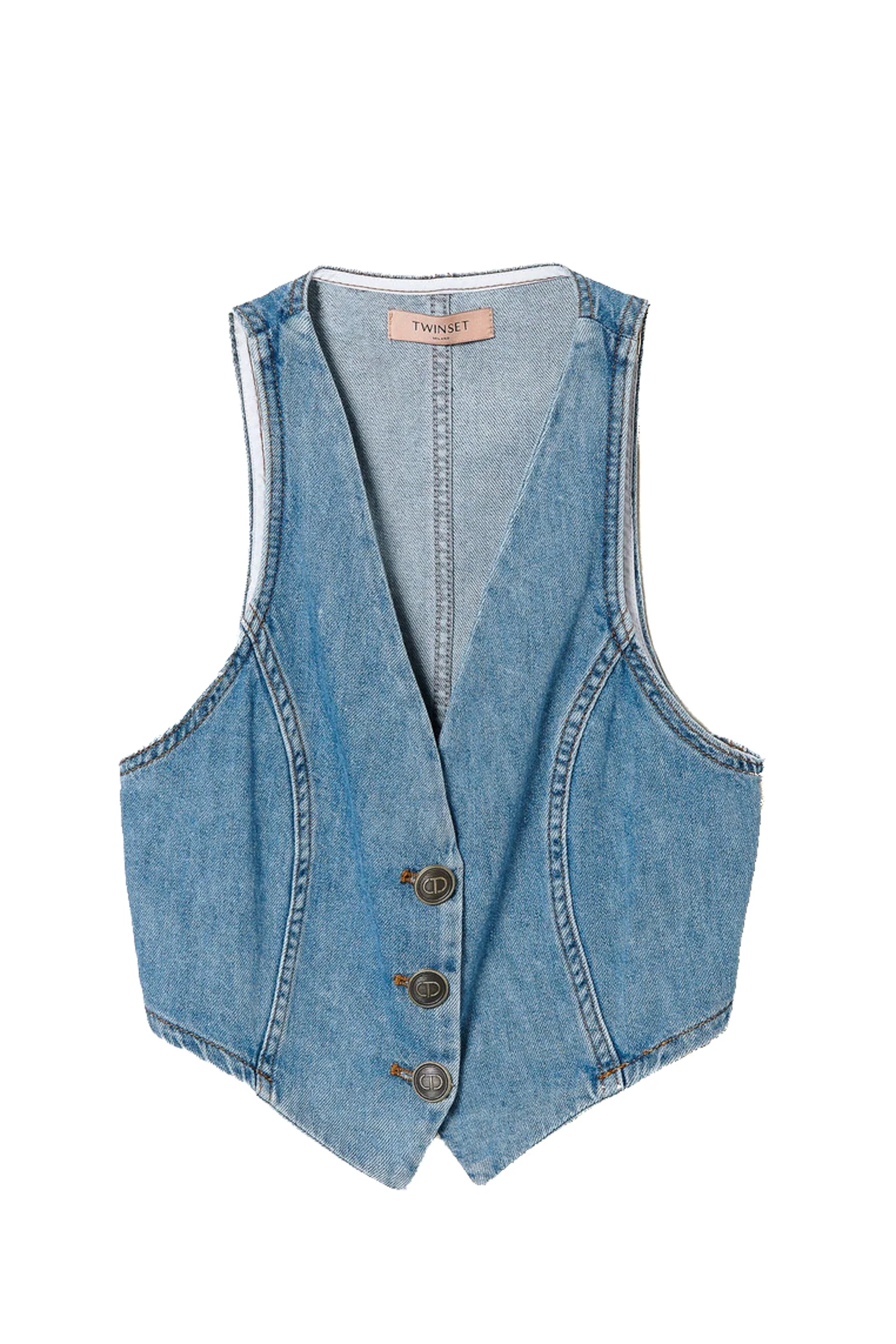 Gilet fitted in jeans di cotone fluido con lavaggio stone, chiusura con bottoni logati, scollatura a V.