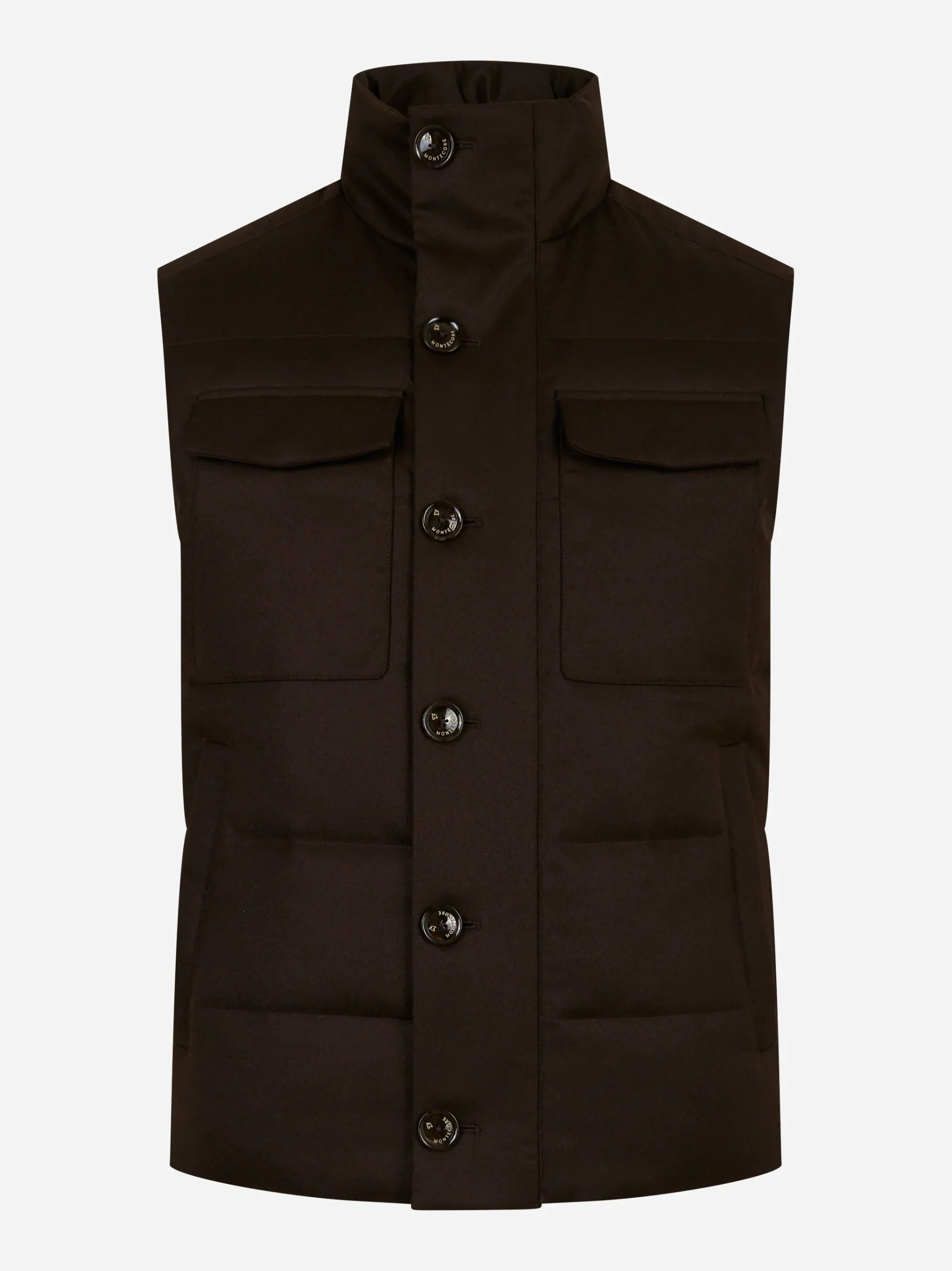 ITEM INFO Gilet in lana con interno in piuma colore marrone Collo alto Chiusura frontale con zip e bottoni Tasche frontali con pattina Imbottitura calda e confortevole Composizione: Lana e piuma Made in Italy TAGLIA E VESTIBILITÀ ▾ Model wears size 50 Model Height 187 cm Bust 91 cm Waist 73 cm Hips 92 cm […]