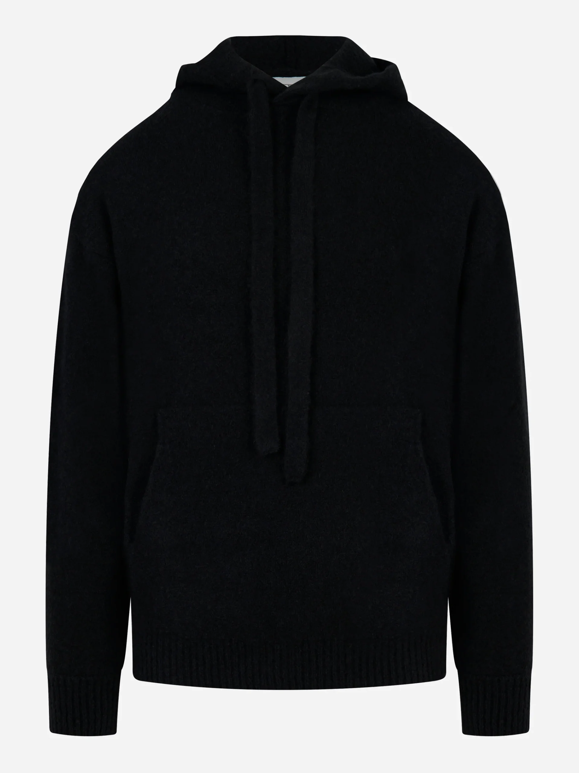 - Felpa con cappuccio in maglia di cashmere e seta nera