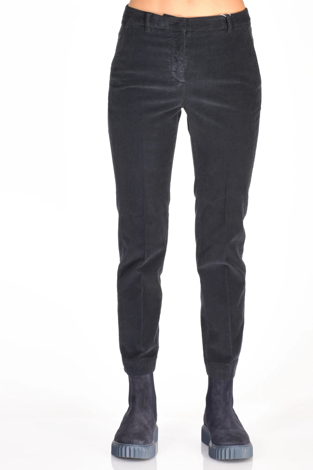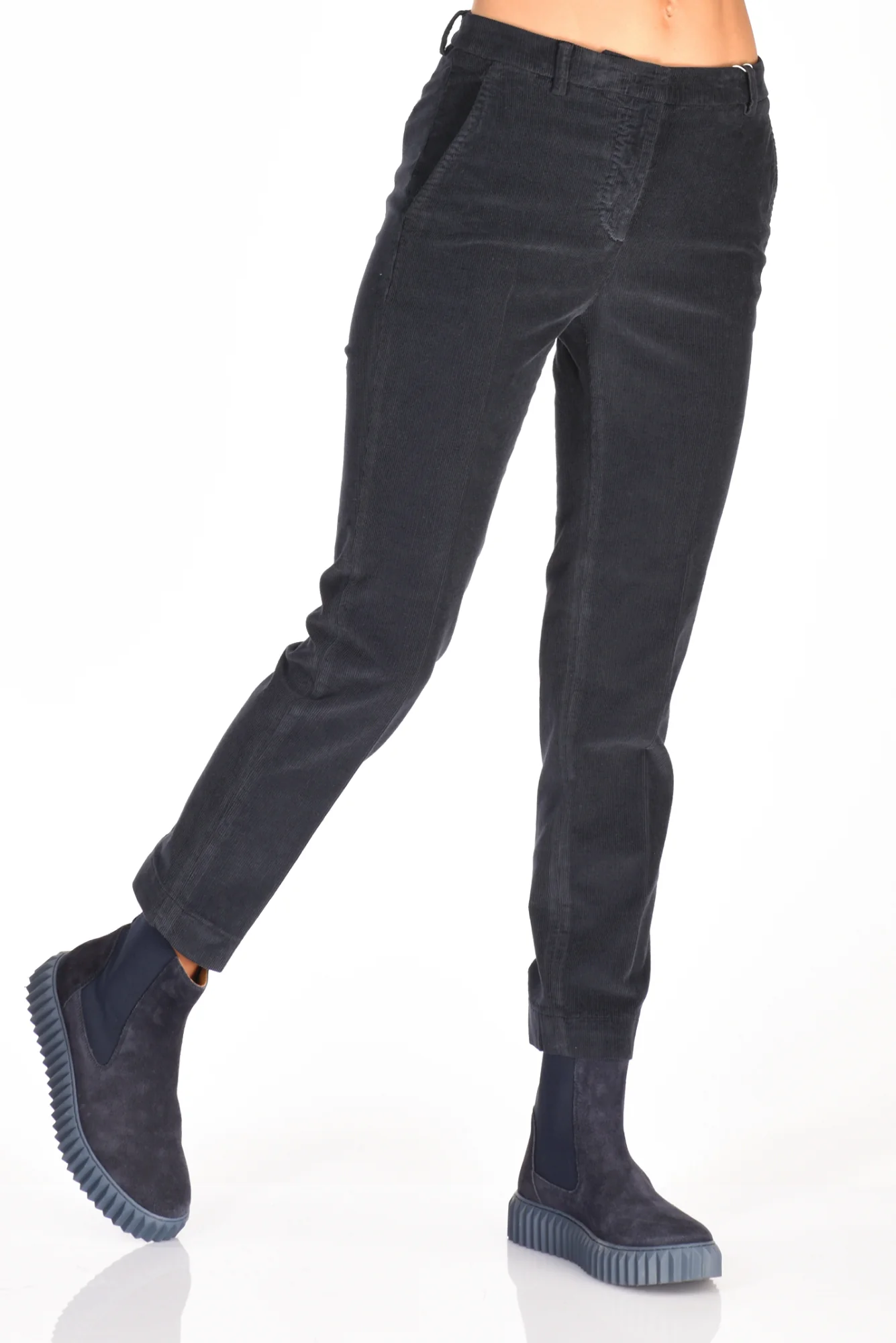 Pantaloni Velluto Millerighe Taglio Sigaretta, Tasche Laterali Inserite E Posteriri A Filetto Con Bottone, Passanti In Vita, Chiusi Da Zip E Gancio Metallico Nascosti, Vestibilita’ Regular, Composizione 98 Cotone, 2 Elastan, Made In Romania