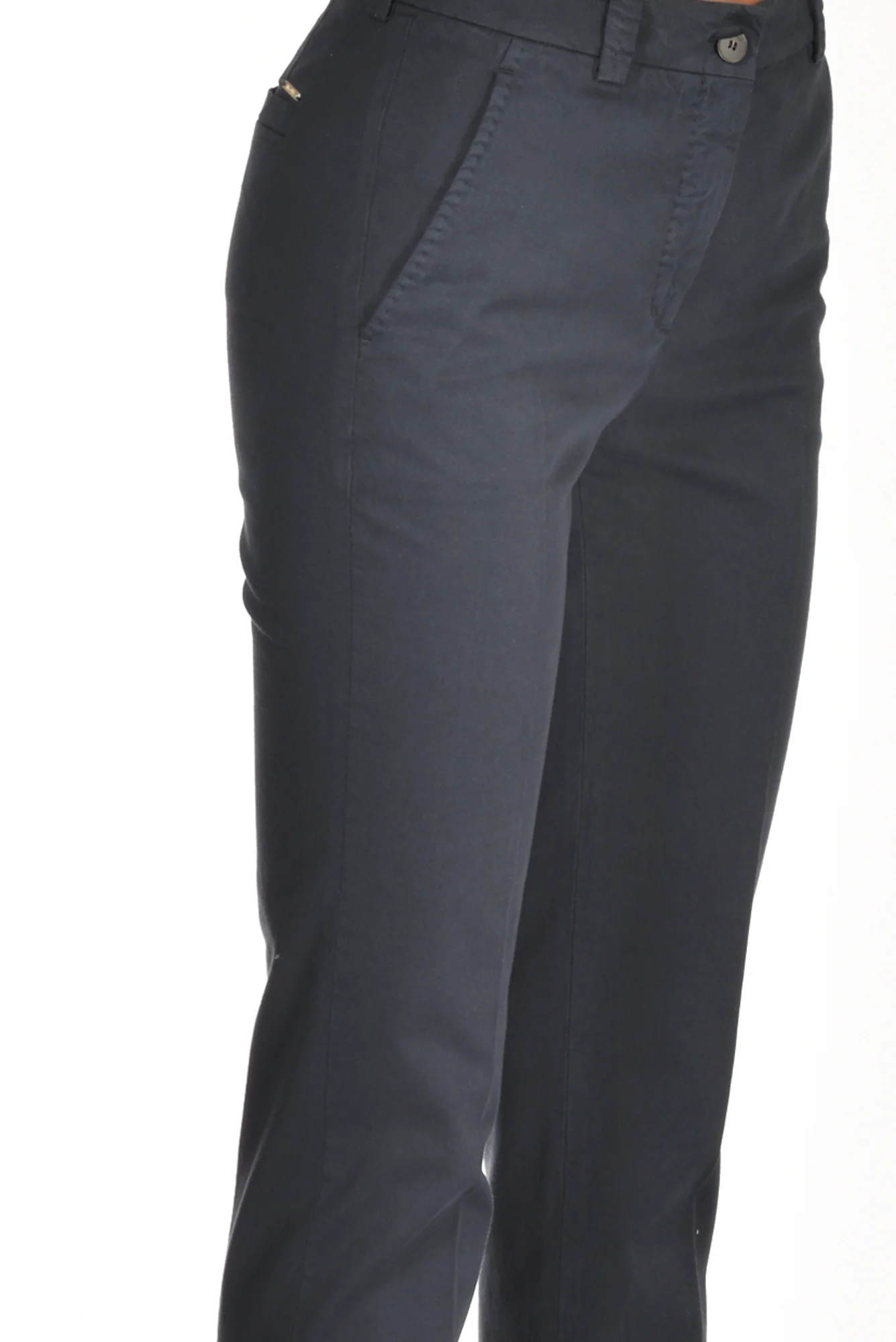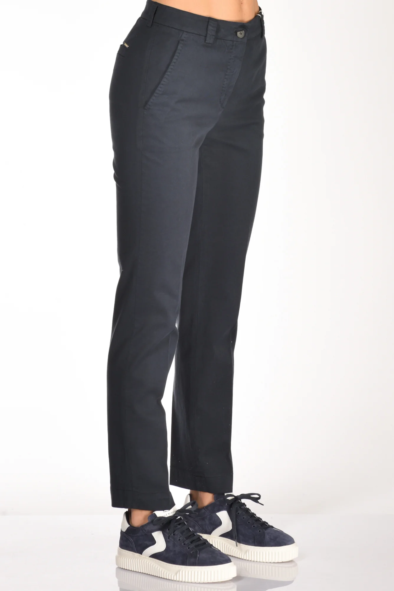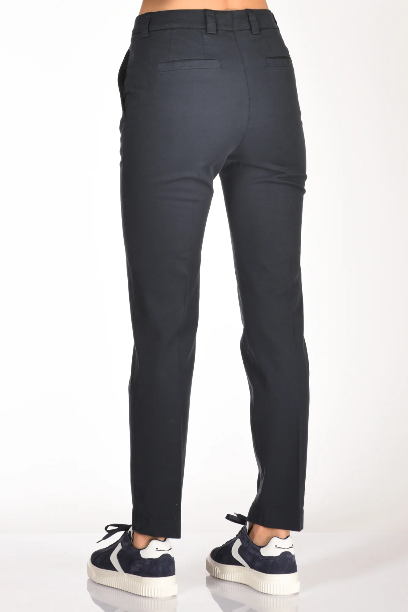 Pantaloni Taglio Sigaretta, Tasche Anteriori Alla Francese E Posteriori A Filetto, Passanti In Vita, Chiusi Da Zip E Bottone Nascosti, Composizione 60 Cotone, 37 Lyocell, 3 Elastan, Made In Romania