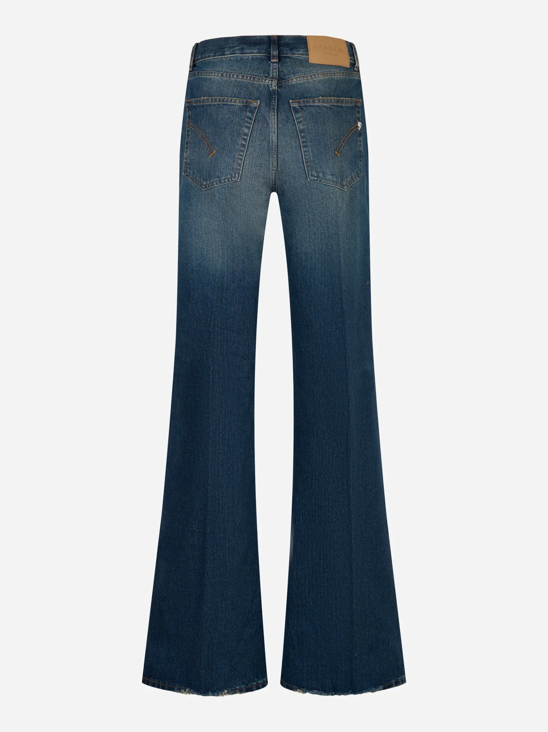 - Taglio svasato dal ginocchio con fondo leggermente sfrangiato