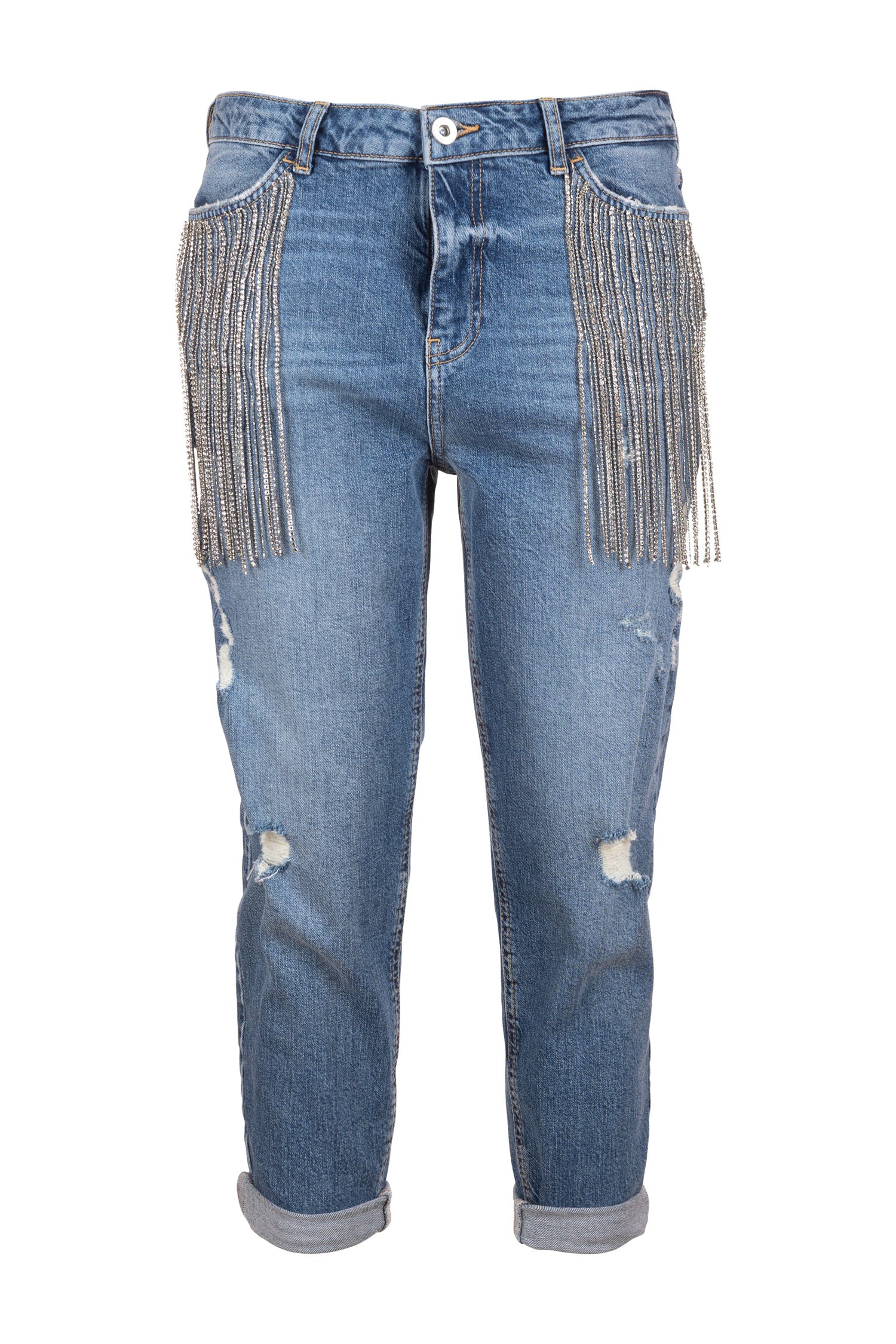 Codice Prodotto: FP23SV5002D419O6-430 Dettagli:Jeans boyfriend in denim con lavaggio chiaro, catene di strass, vita alta, 4 tasche, e con fondo dritto.COMPOSITION: COTTON 99% ELASTANE 1% Vestibilità:Regolare
