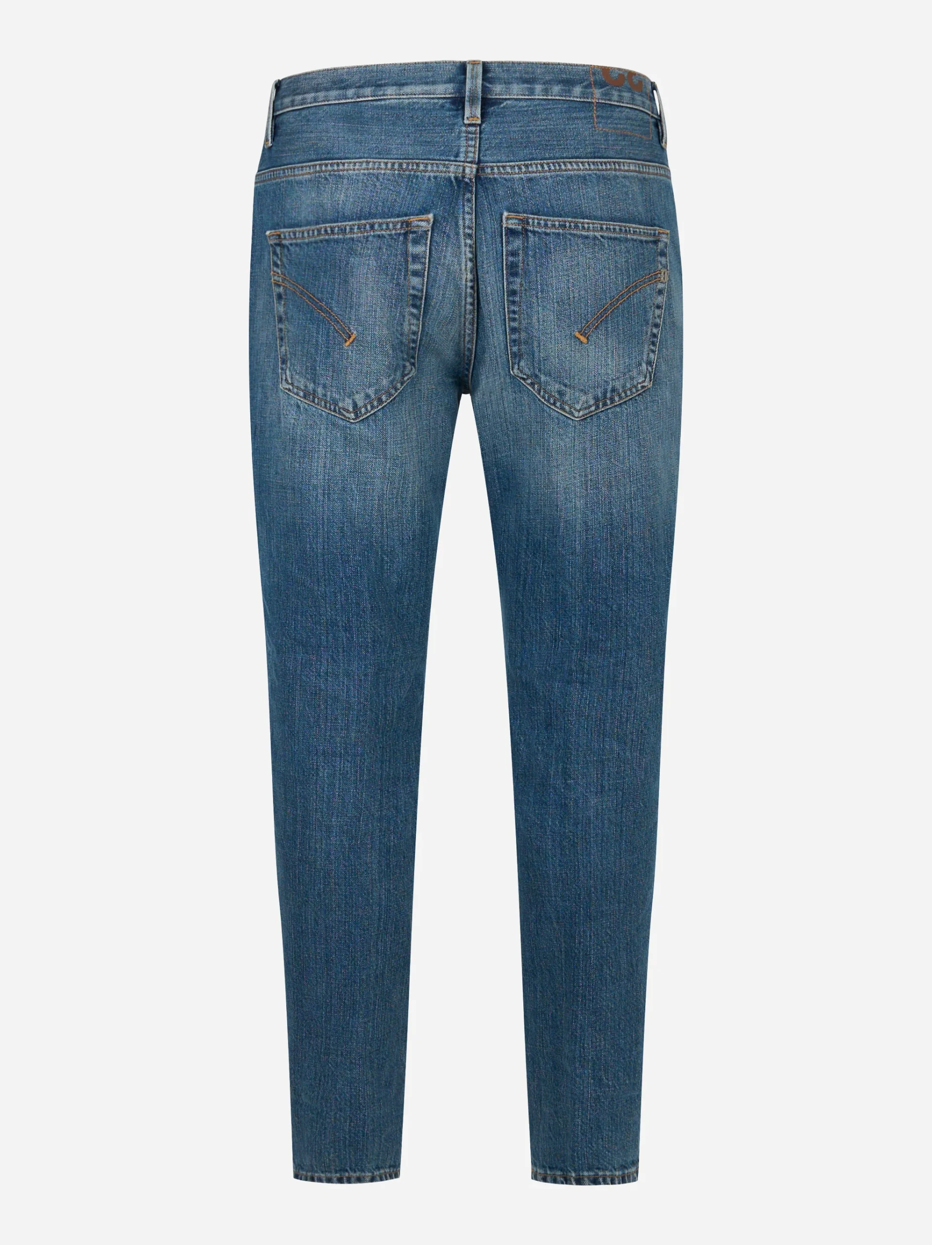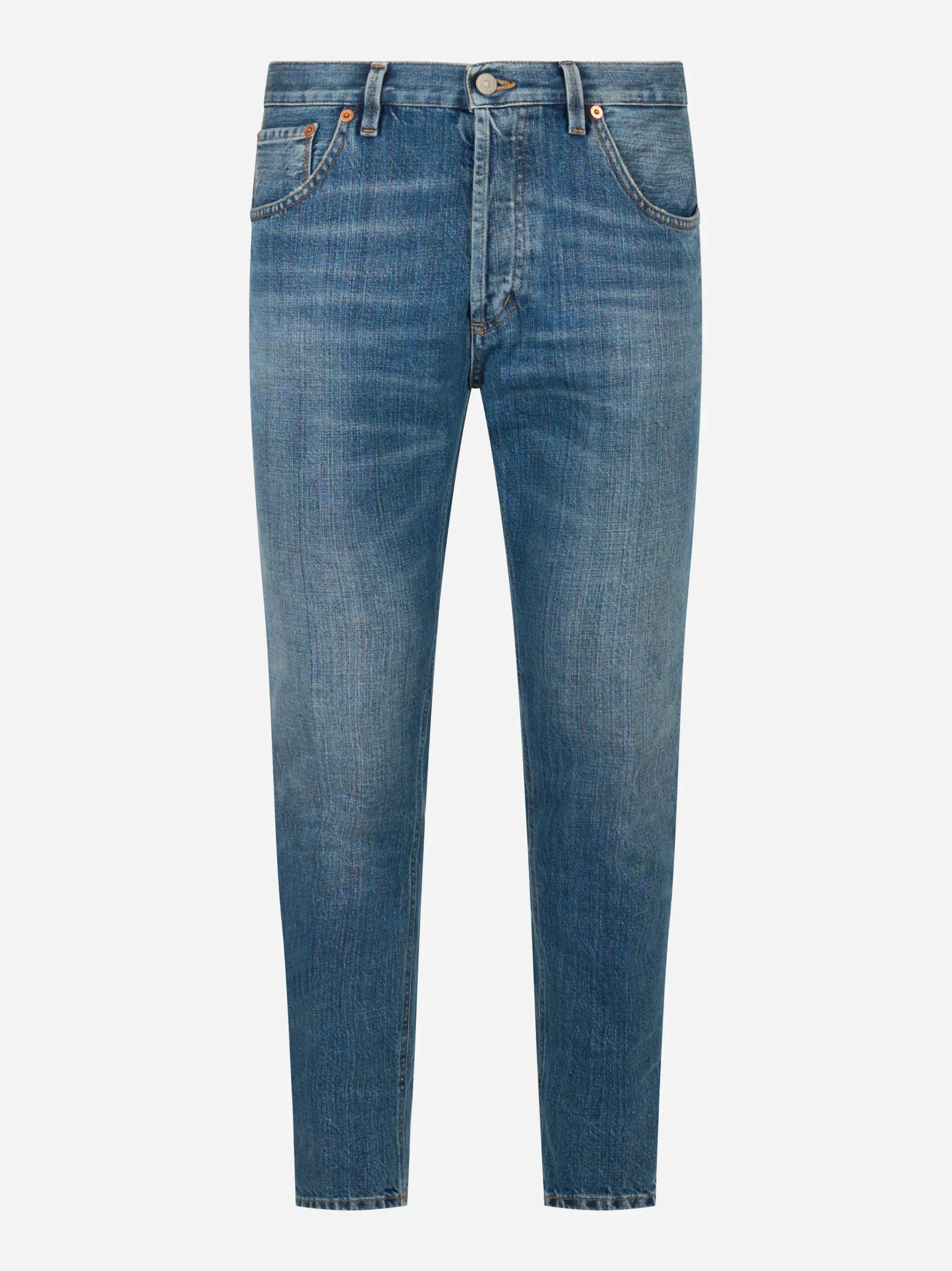 ITEM INFO Jeans blu carrot fit Brighton in denim fermo Vita media e gamba leggermente affusolata Cinque tasche e chiusura con bottone e zip Finitura lavata con effetto vintage Vestibilità regolare Composizione: 100% cotone Made in Italy