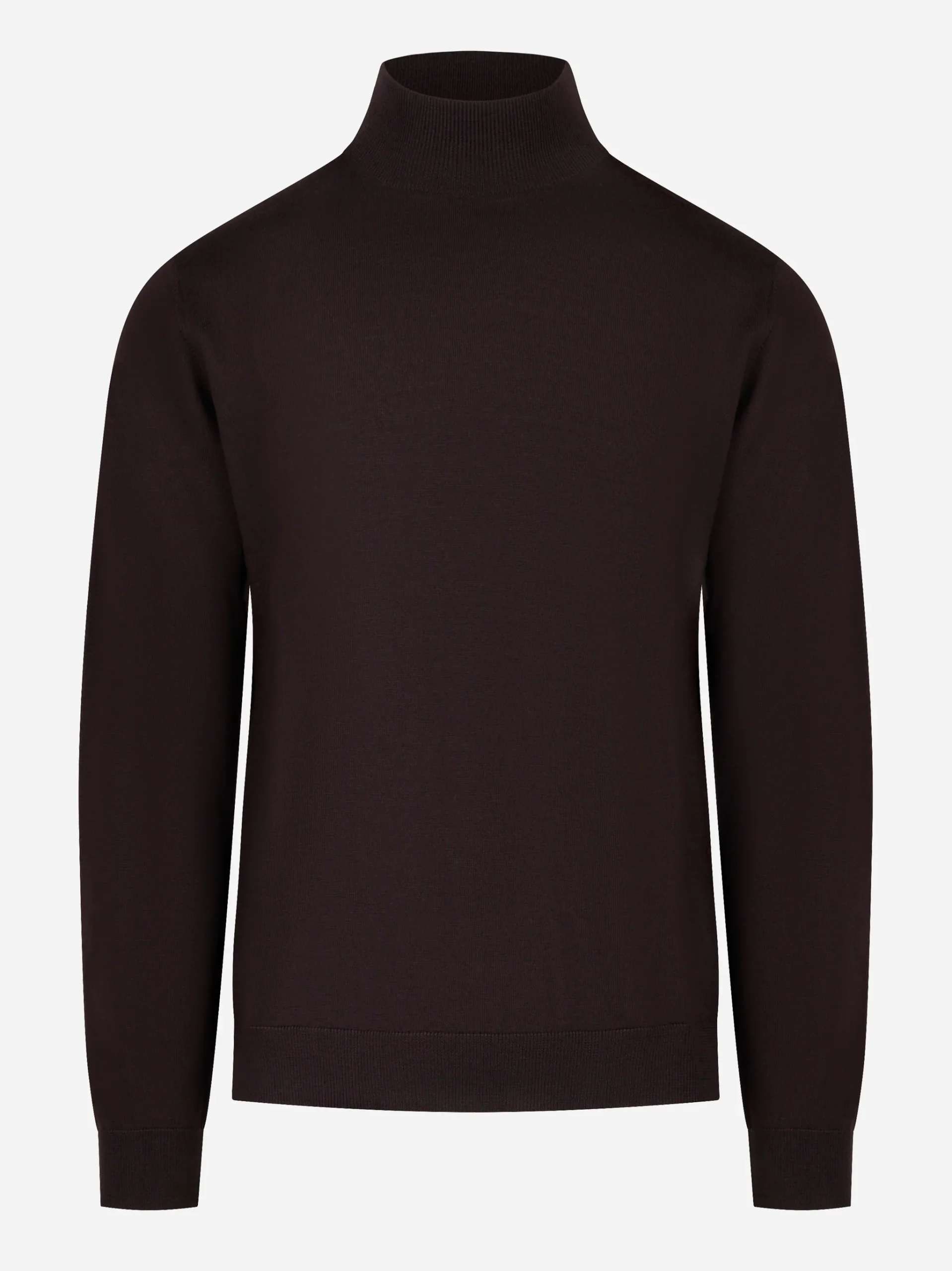 ITEM INFO Lupetto marrone in lana merino finezza 16 Collo alto e bordi a costine Filato fine, leggero e traspirante Taglio regolare e linee essenziali Ideale come sottogiacca o capo daily raffinato Composizione: 100% lana merino Made in Italy