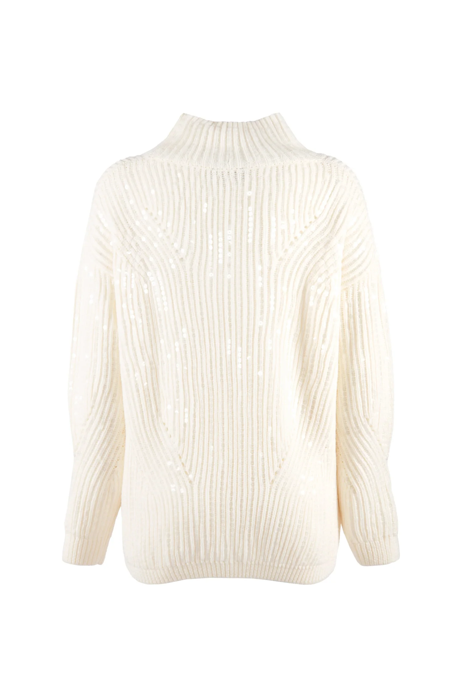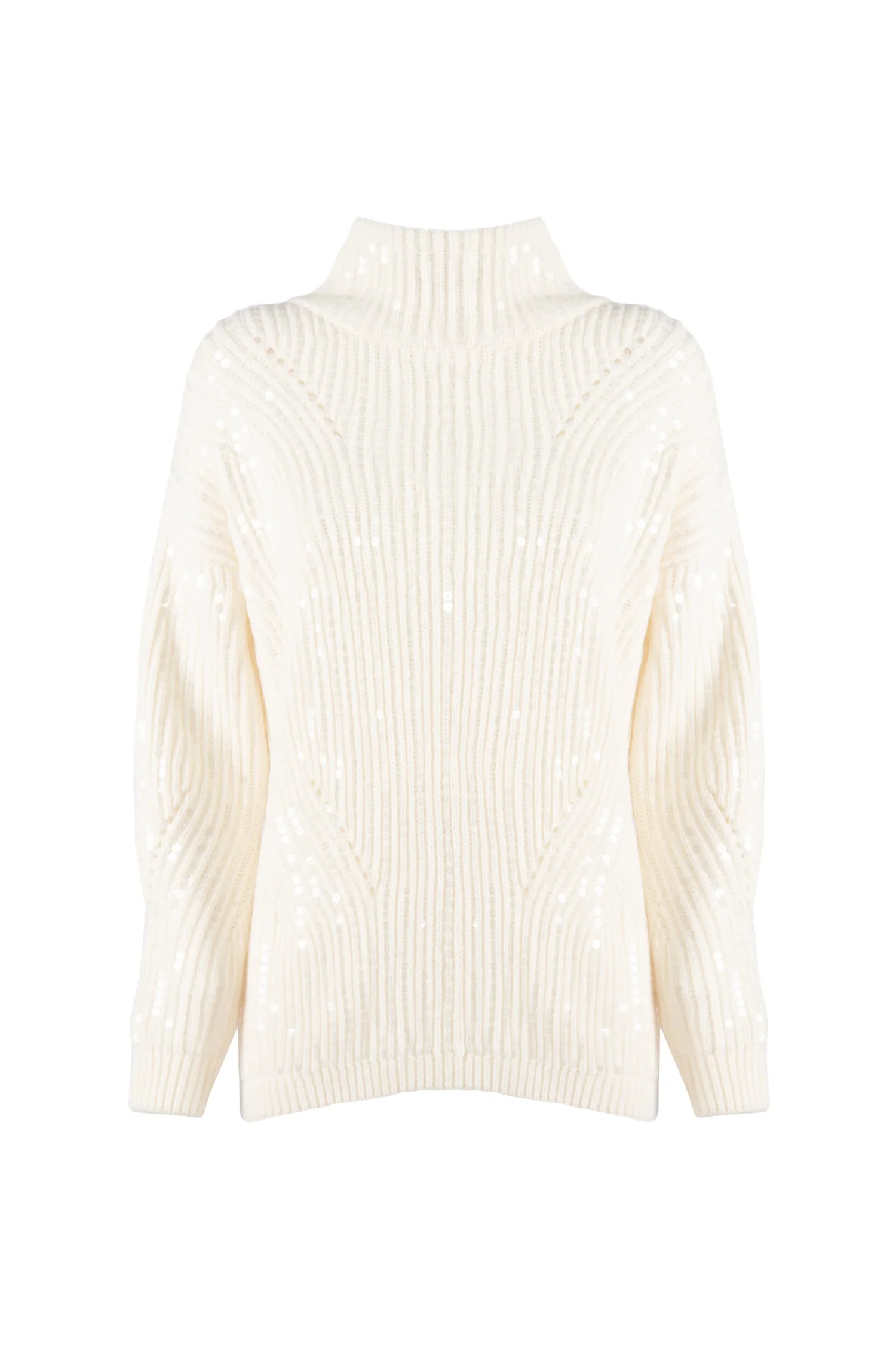 Maglia a collo alto “Minnie” avorio in lana e paillettes