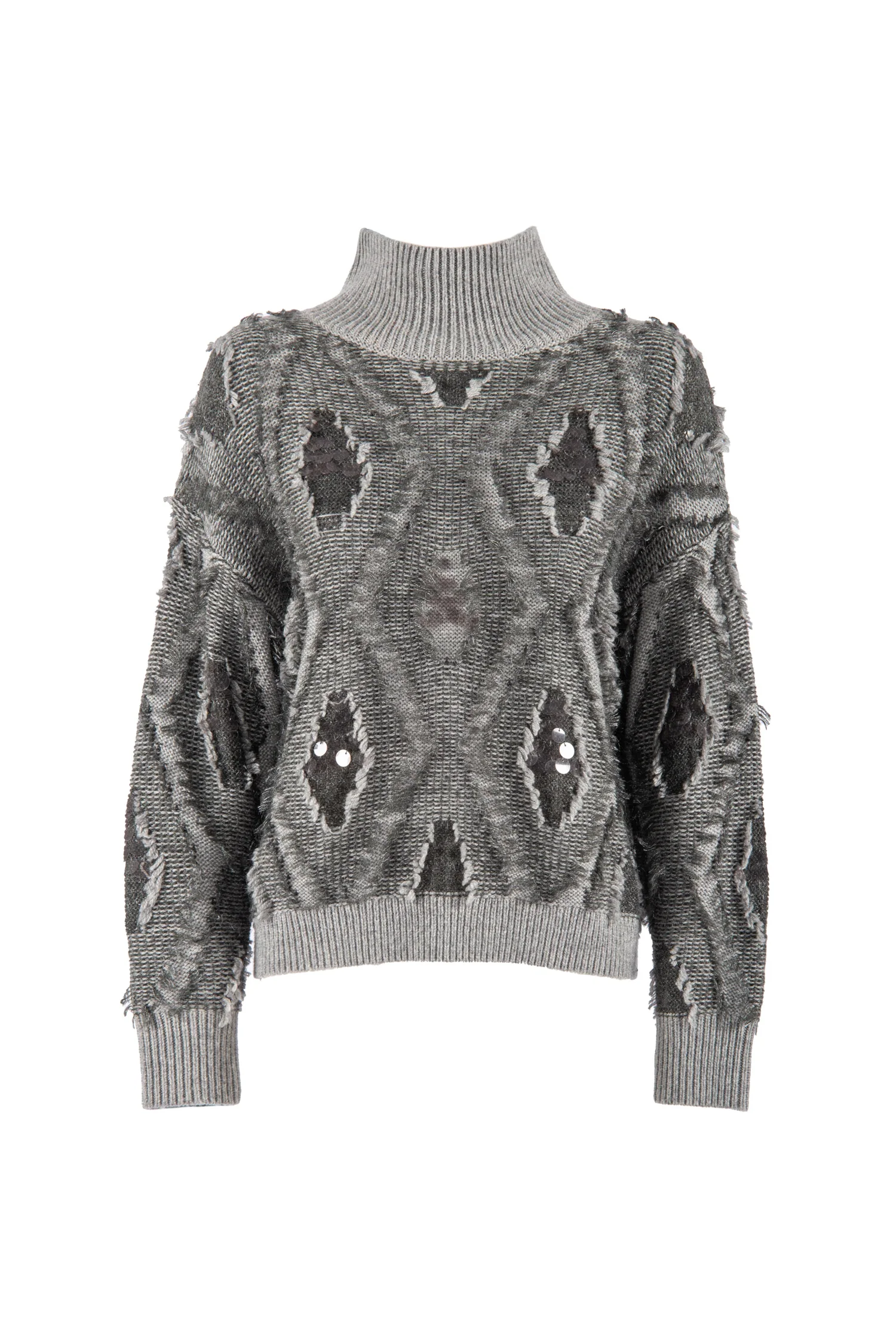 Maglia a collo alto “Muccino” grigia con motivo geometrico