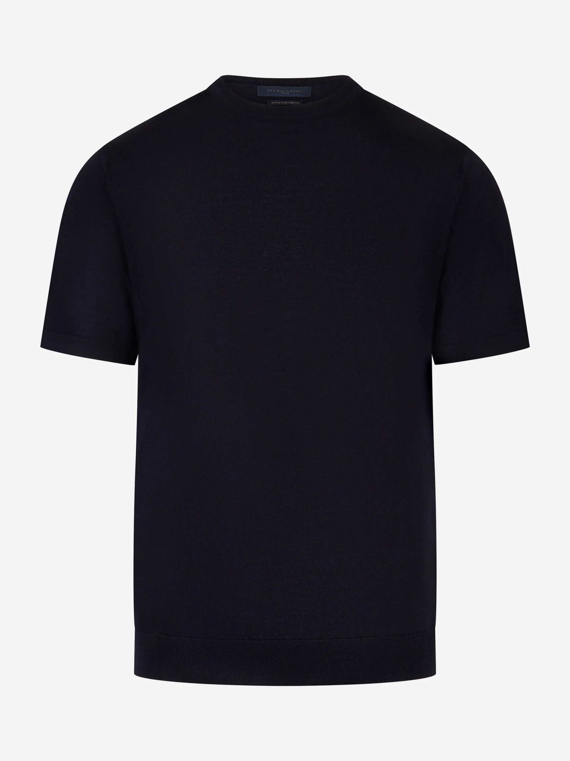 - Maglia blu navy a maniche corte in lana merino finezza 16