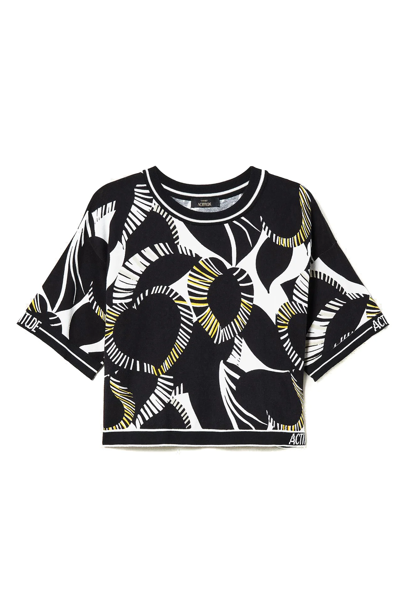 Maglia boxy collezione Actitude stampata in cotone e viscosa con maniche corte e logo stampato sui profili.