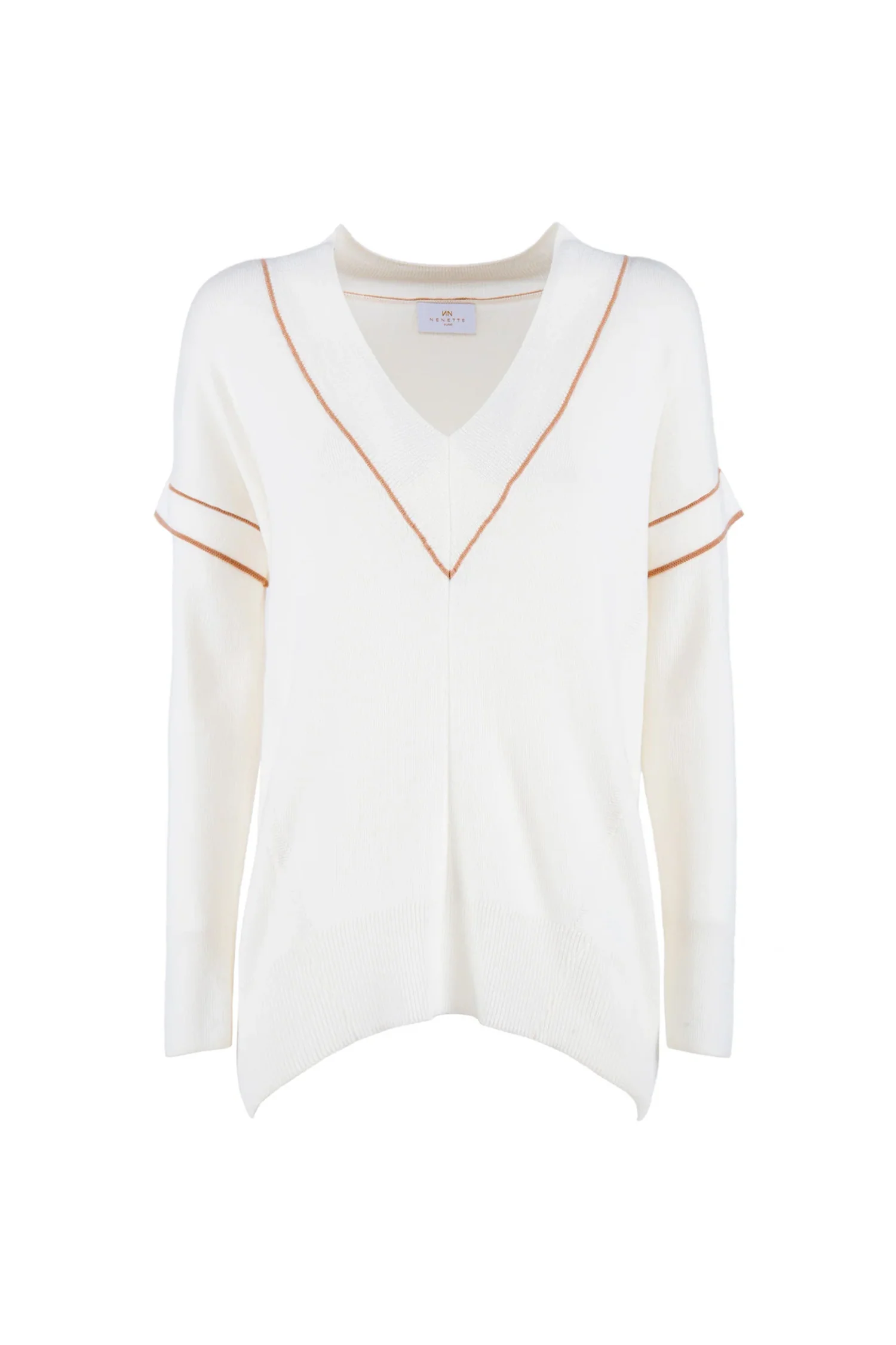 Maglia con scollo a V “MAUGER” avorio in lana blend e dettagli a contrasto
