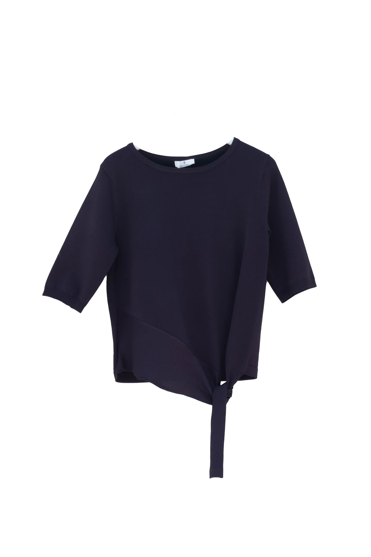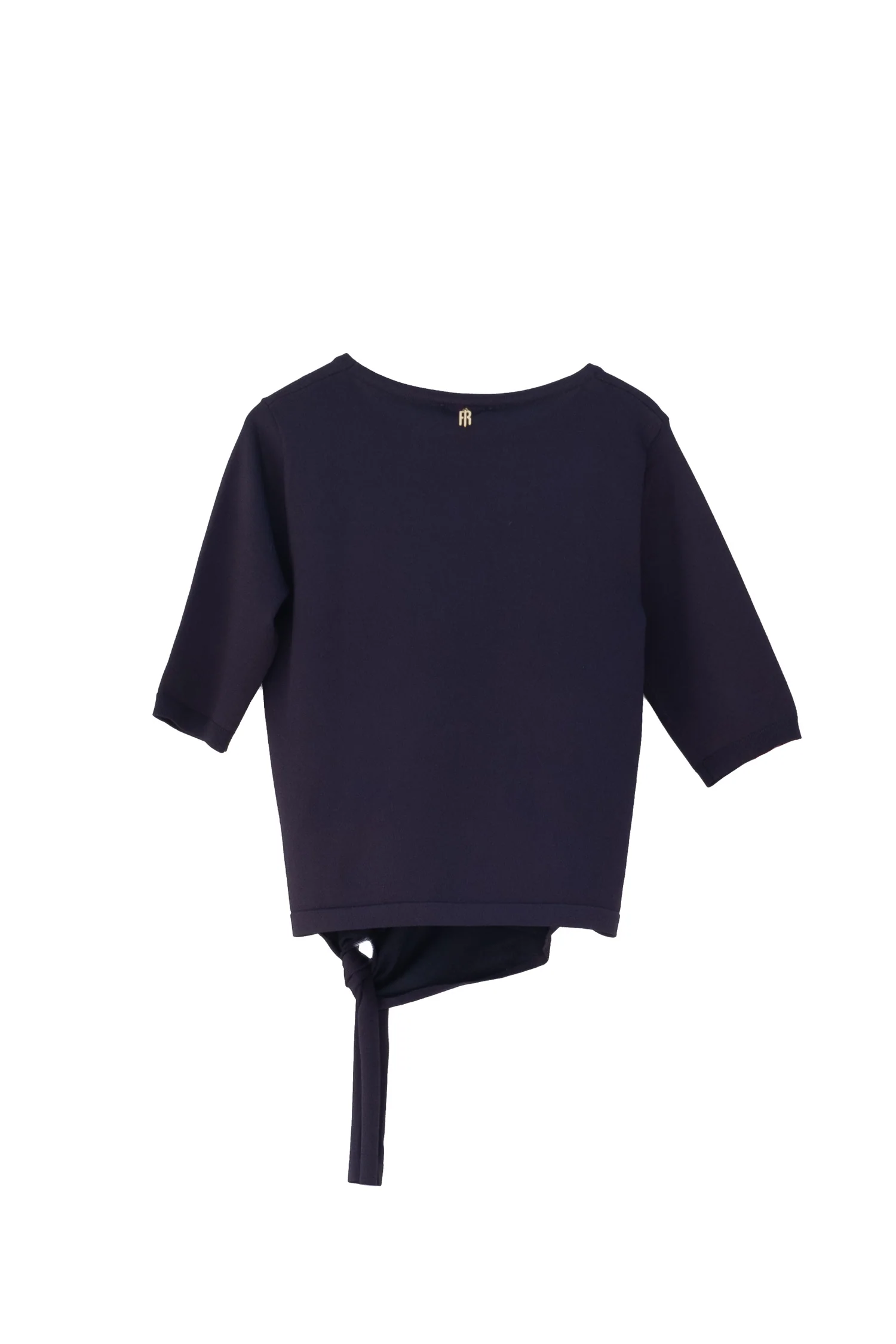 Maglia regular con fiocco sul fondo, girocollo, e con maniche corte.