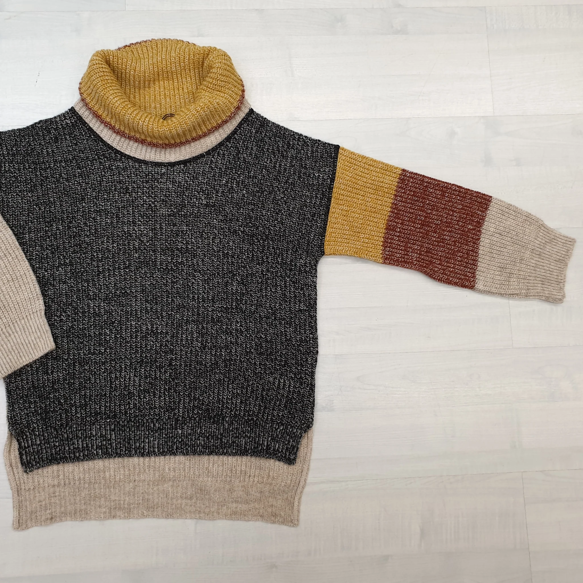 Maglione collo ciambella colorblock con colori a contrasto.