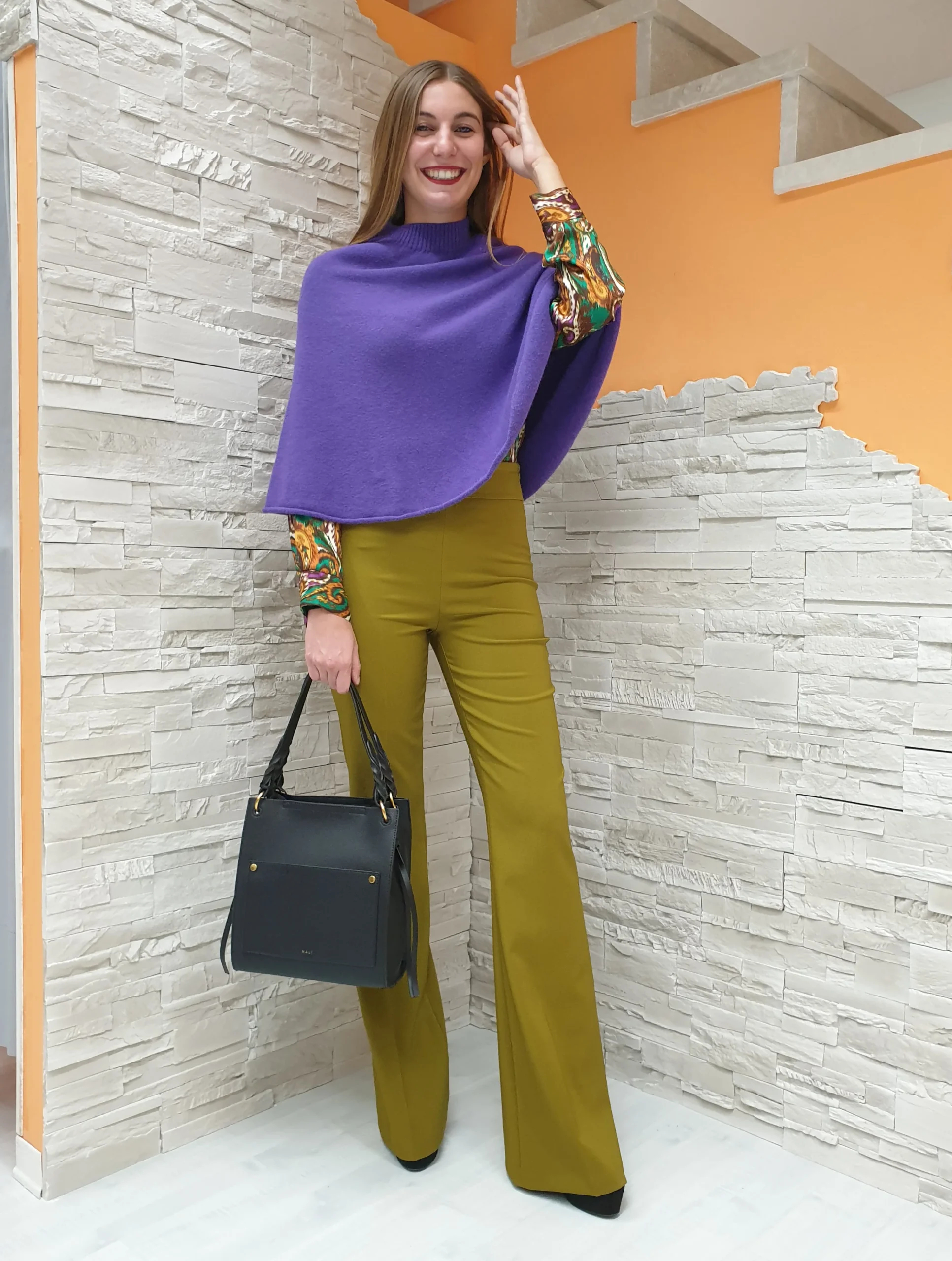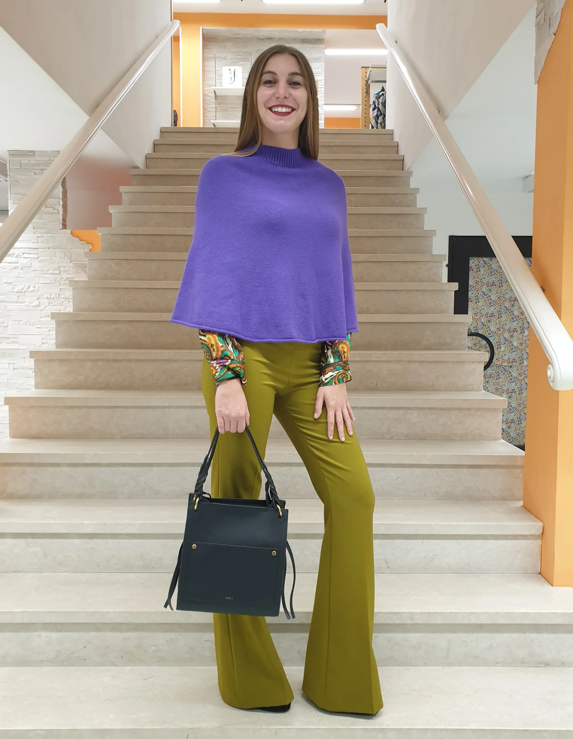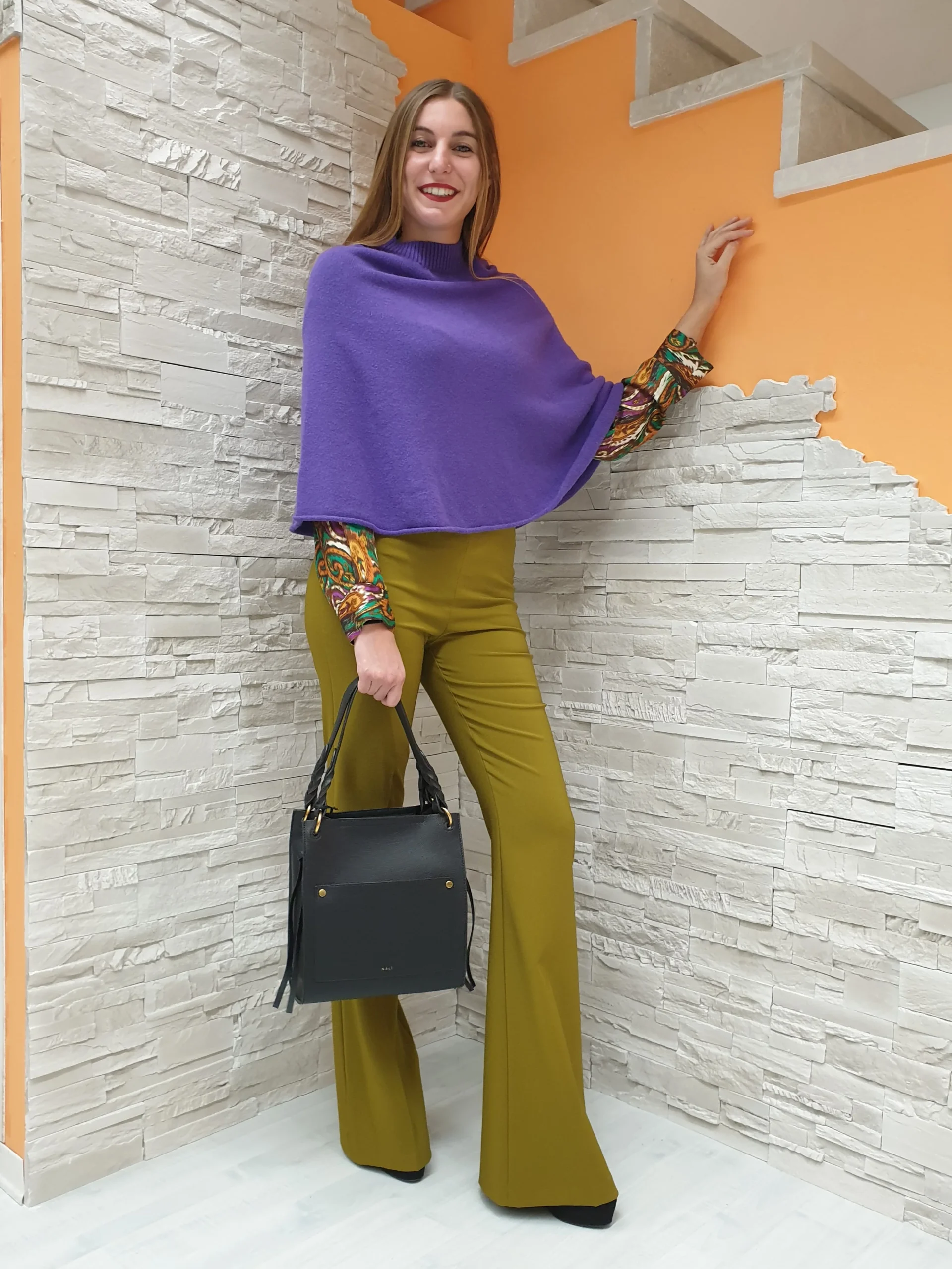 Mantellina viola super soft ed elasticizzata. Composizione: 50% Viscosa 27% Poliestere 23% Poliammide MADE IN ITALY