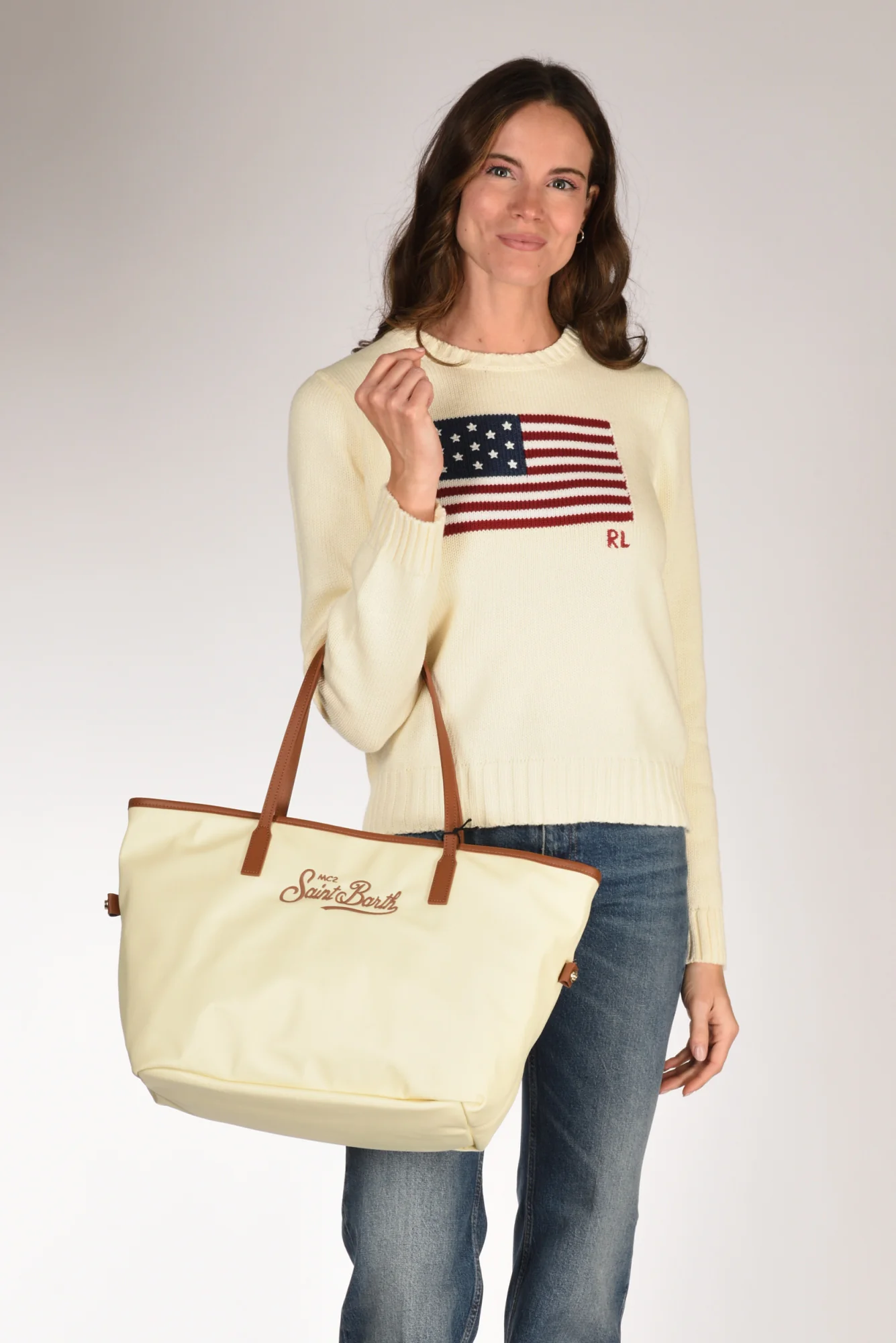Mc2 Saint Barth Borsa City Bag Beige Chiaro/marrone Chiaro Donna