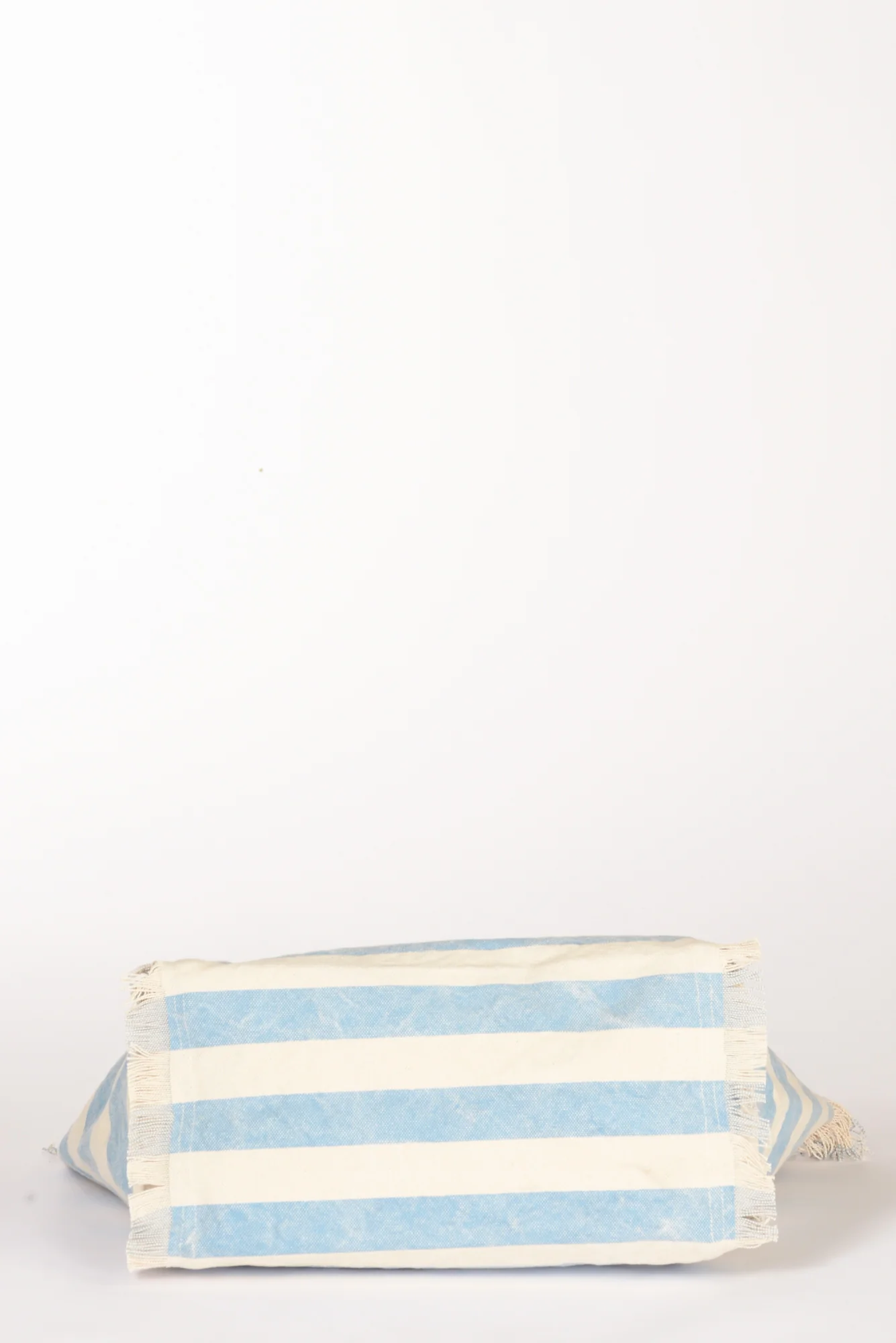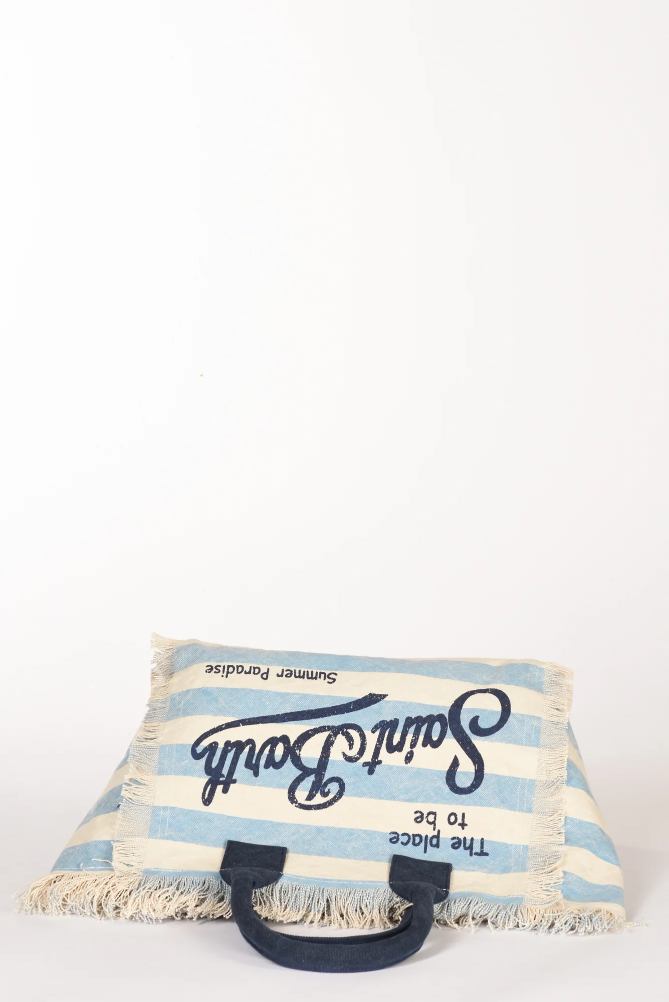 Shopper Foderata A Righe, Fondo Morbido, Frange Laterali, Logo Stampato Ambo I Lati, Chiusura Zip Centrale, Due Tasche Interne Multiuso Di Cui Una Zippata, Dimensioni 40x32x18, Luce Manico 15 Cm, Made In India, Composizione 100 Cotone, Fodera 100 Cotone