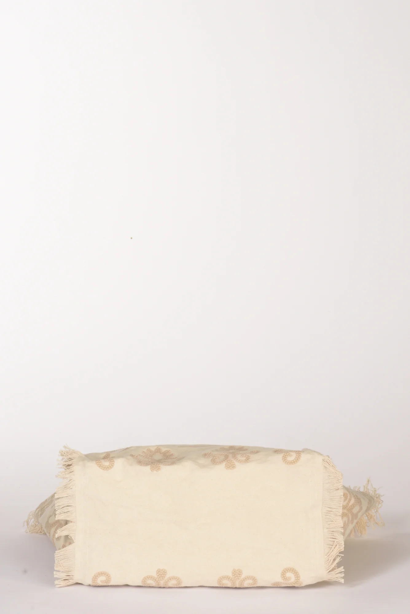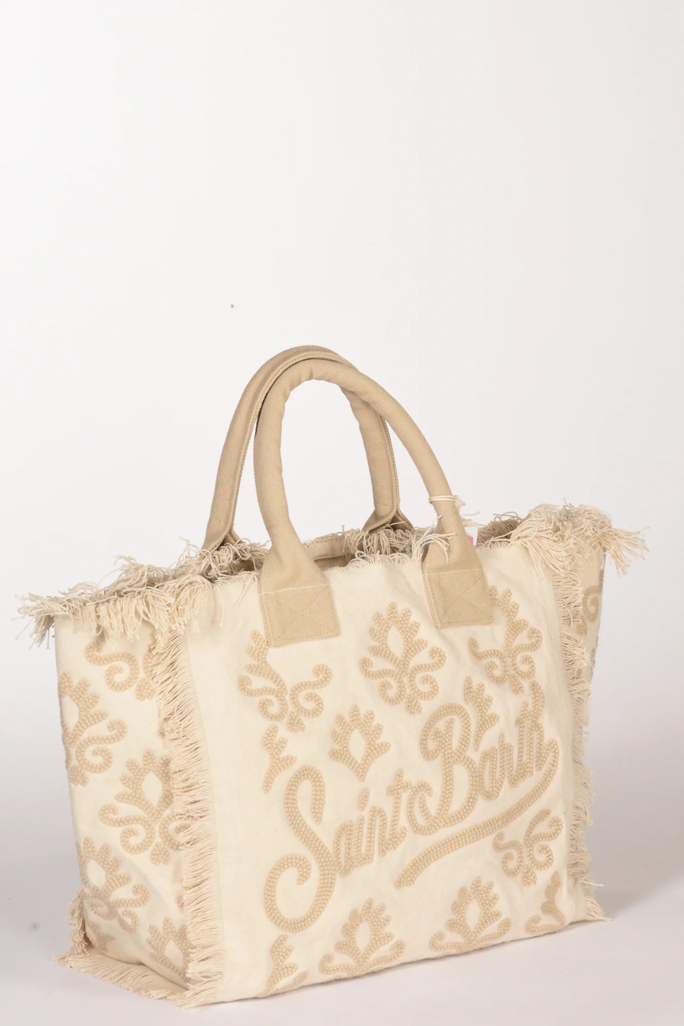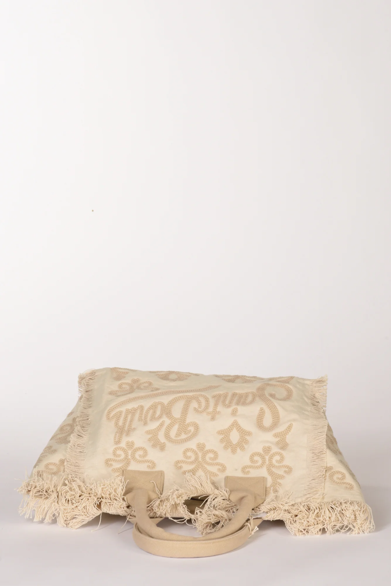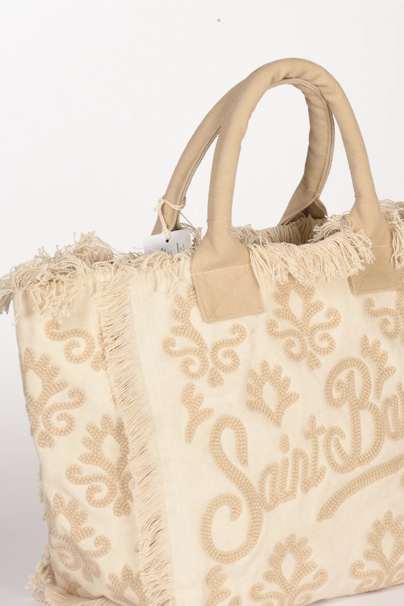 Shopper Foderata Con Fondo Morbido, Frange Laterali, Logo E Ricami In Rilievo Ambo I Lati, Chiusura Zip Centrale, Due Tasche Interne Multiuso Di Cui Una Zippata, Dimensioni 40x32x18, Luce Manico 15 Cm, Made In Inda, Composizione 100 Cotone, Fodera 100 Cotone
