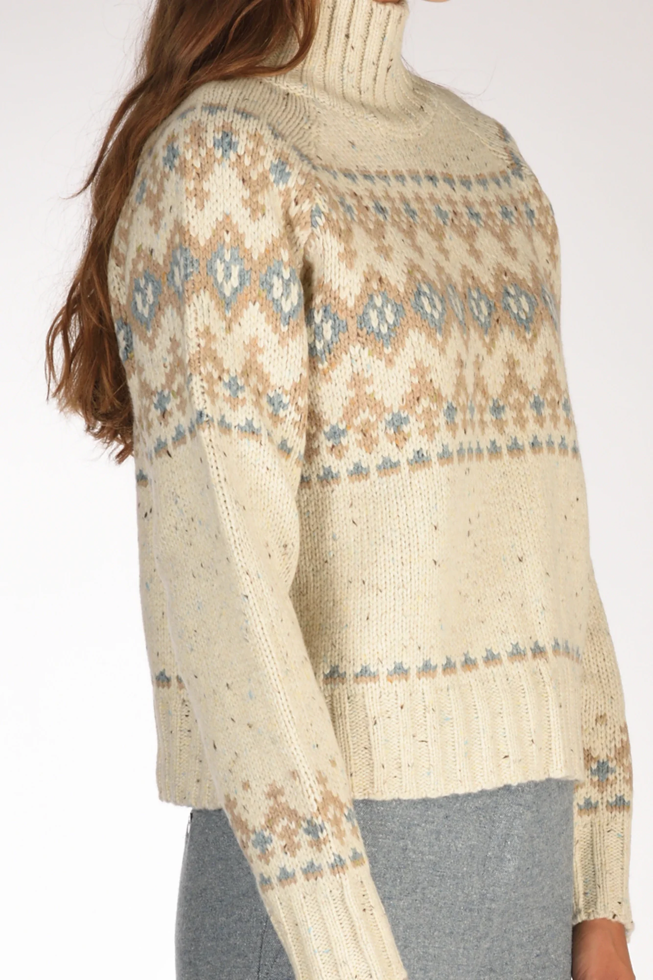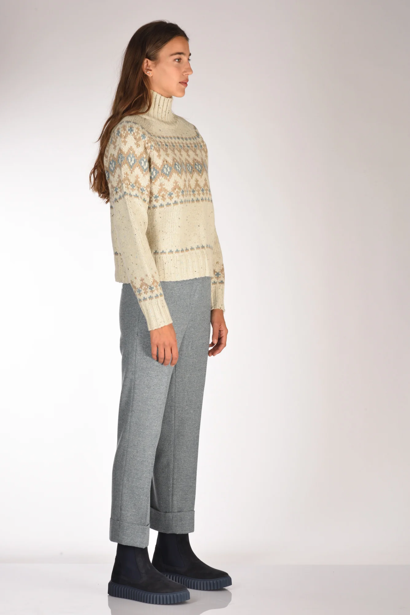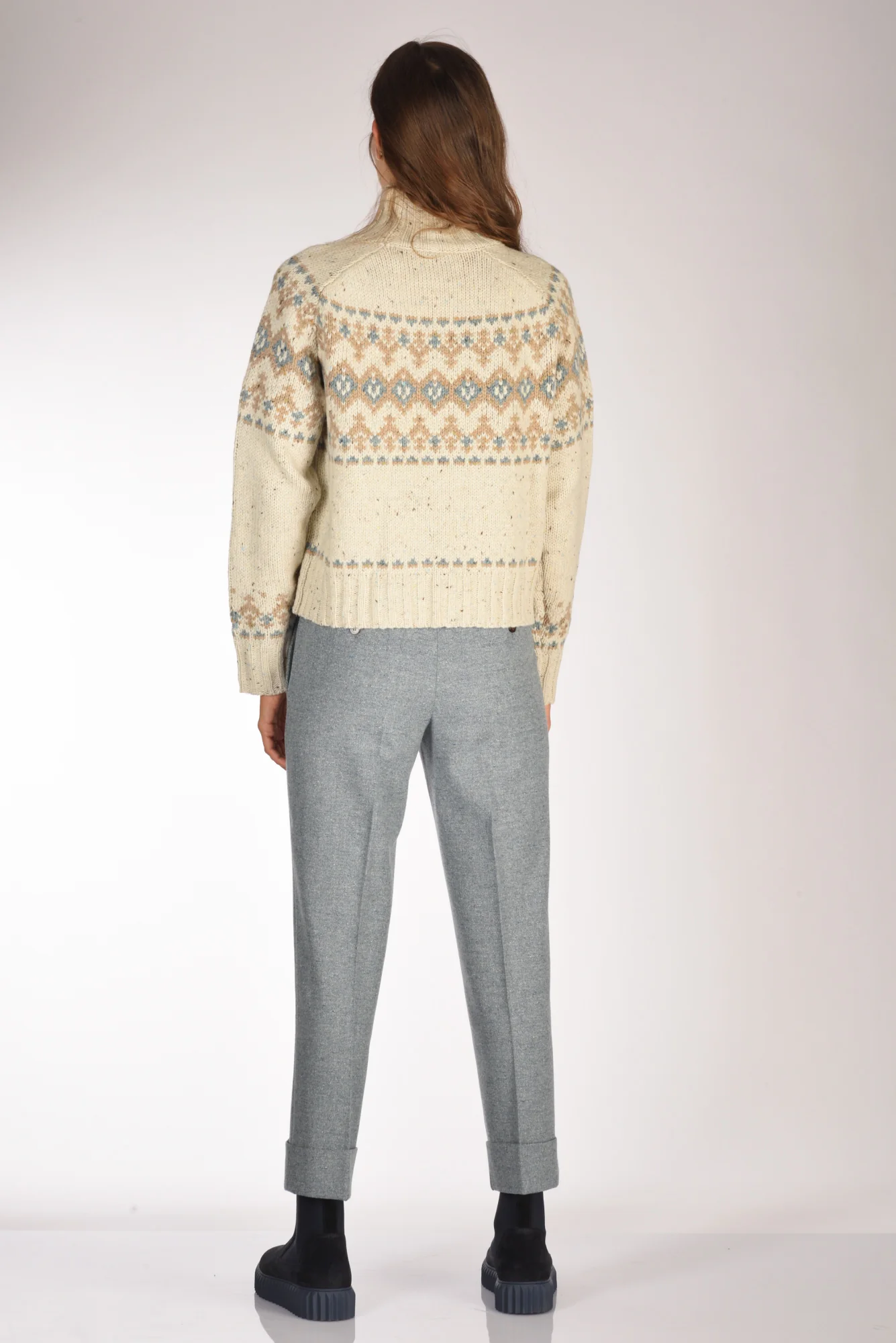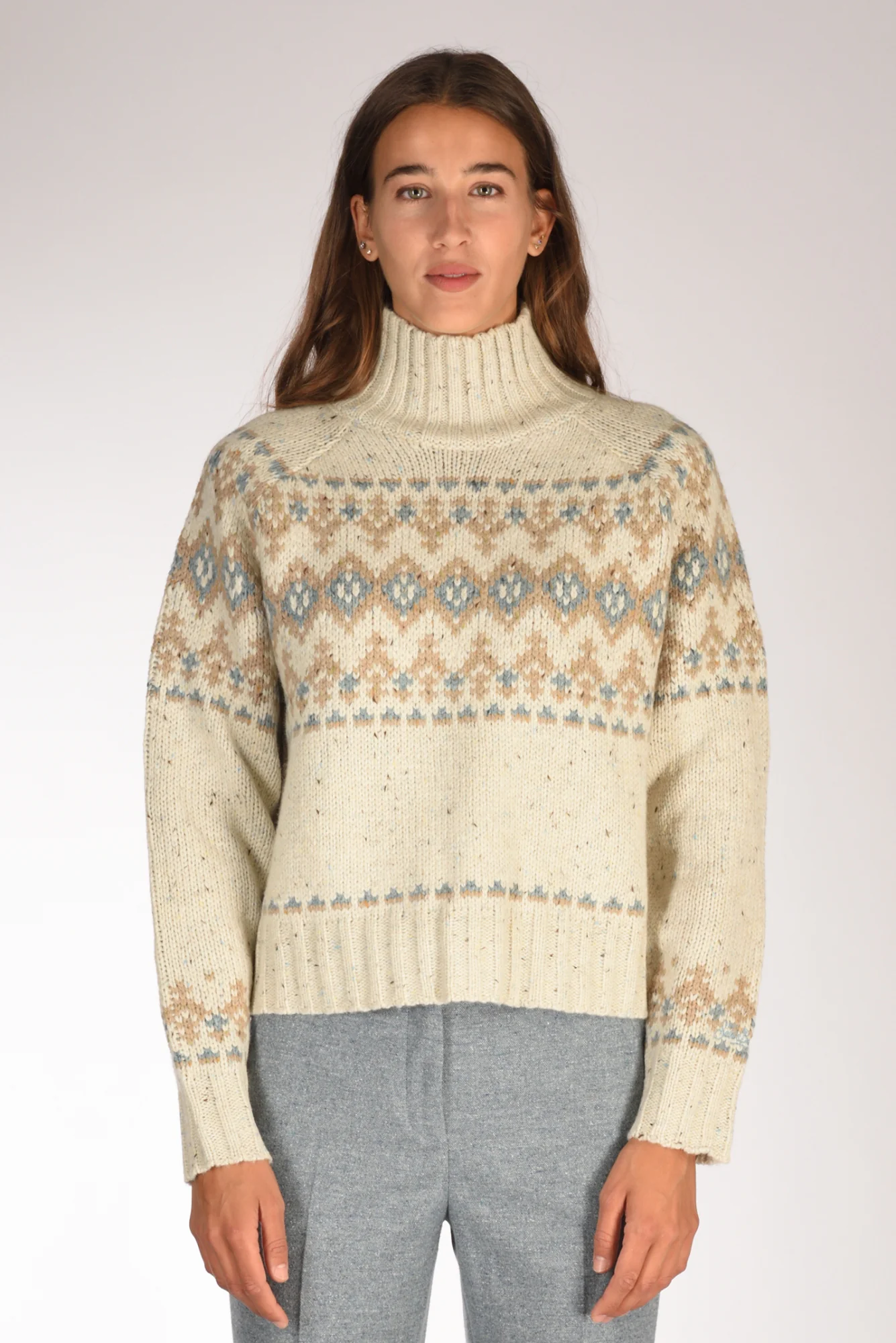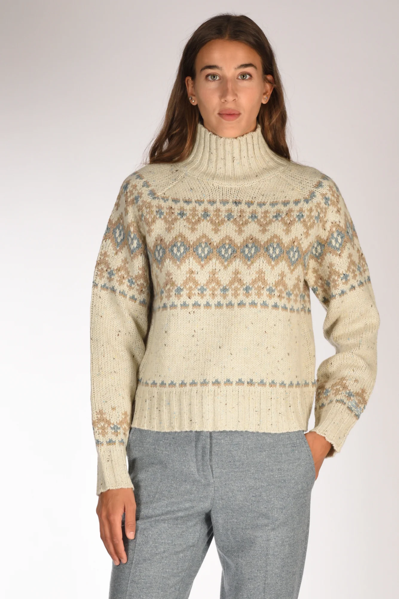 Maglia Collo Alto, Maniche Raglan, Ricamo Stile Norvegese, Vestibilita’ Regular, Composizione 50 Lana, 50 Acrilico, Made In Chna