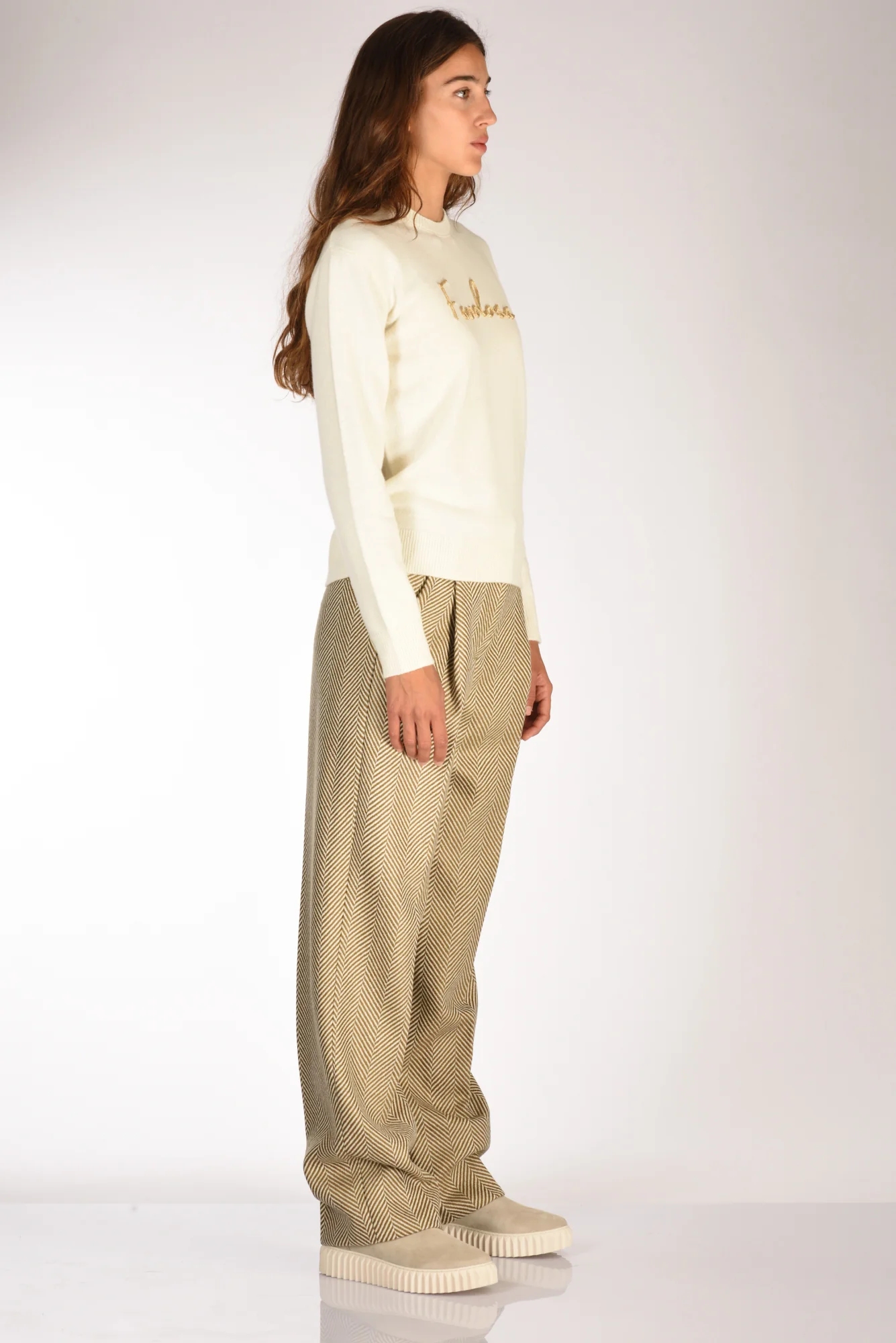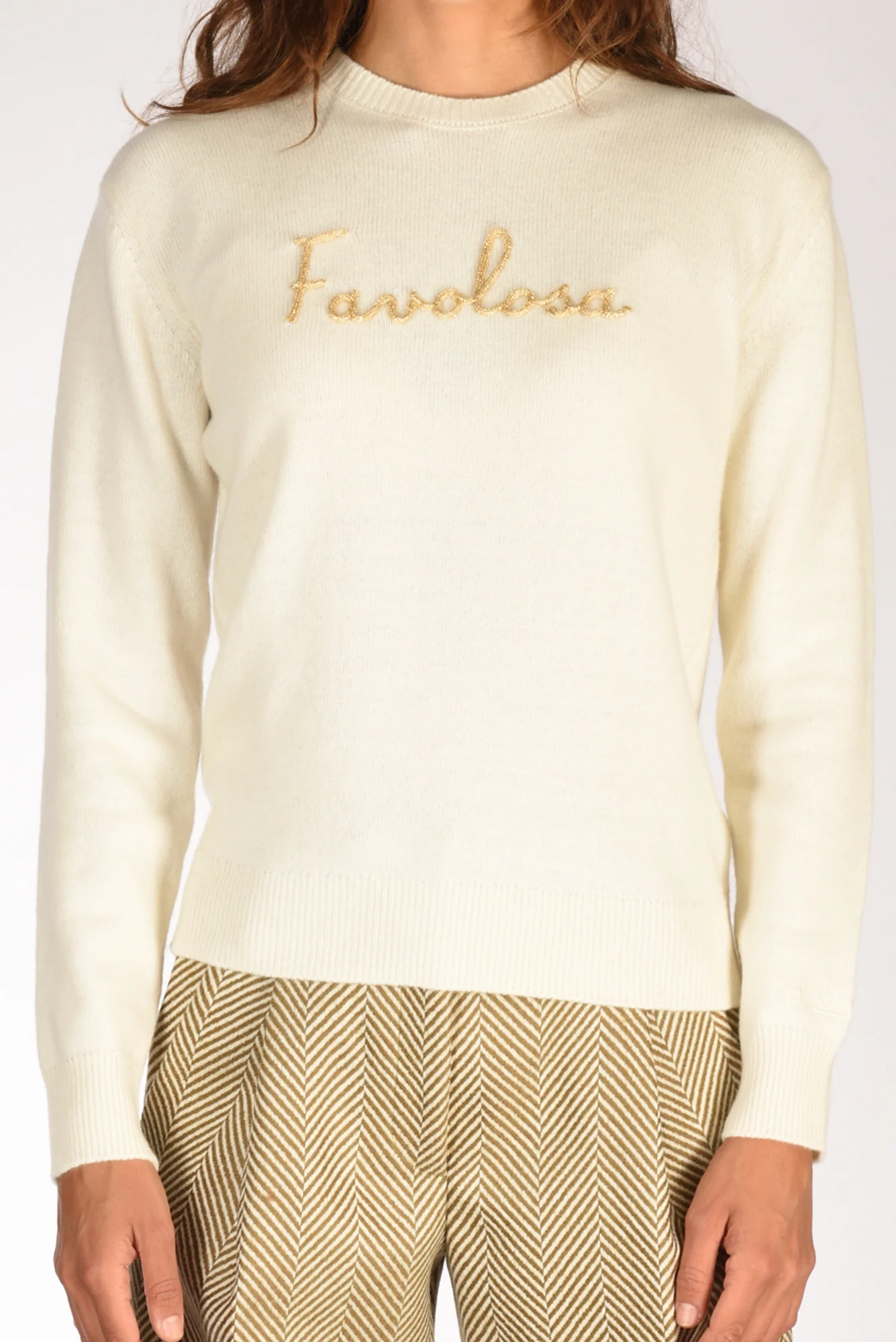 Maglia Girocollo, Ricamo Frontale Contrasto Colore, Vestibilita’ Regular, Composizione 45 Lana, 30 Viscosa,15 Poliammidica,10 Cachemire, Made In Italy