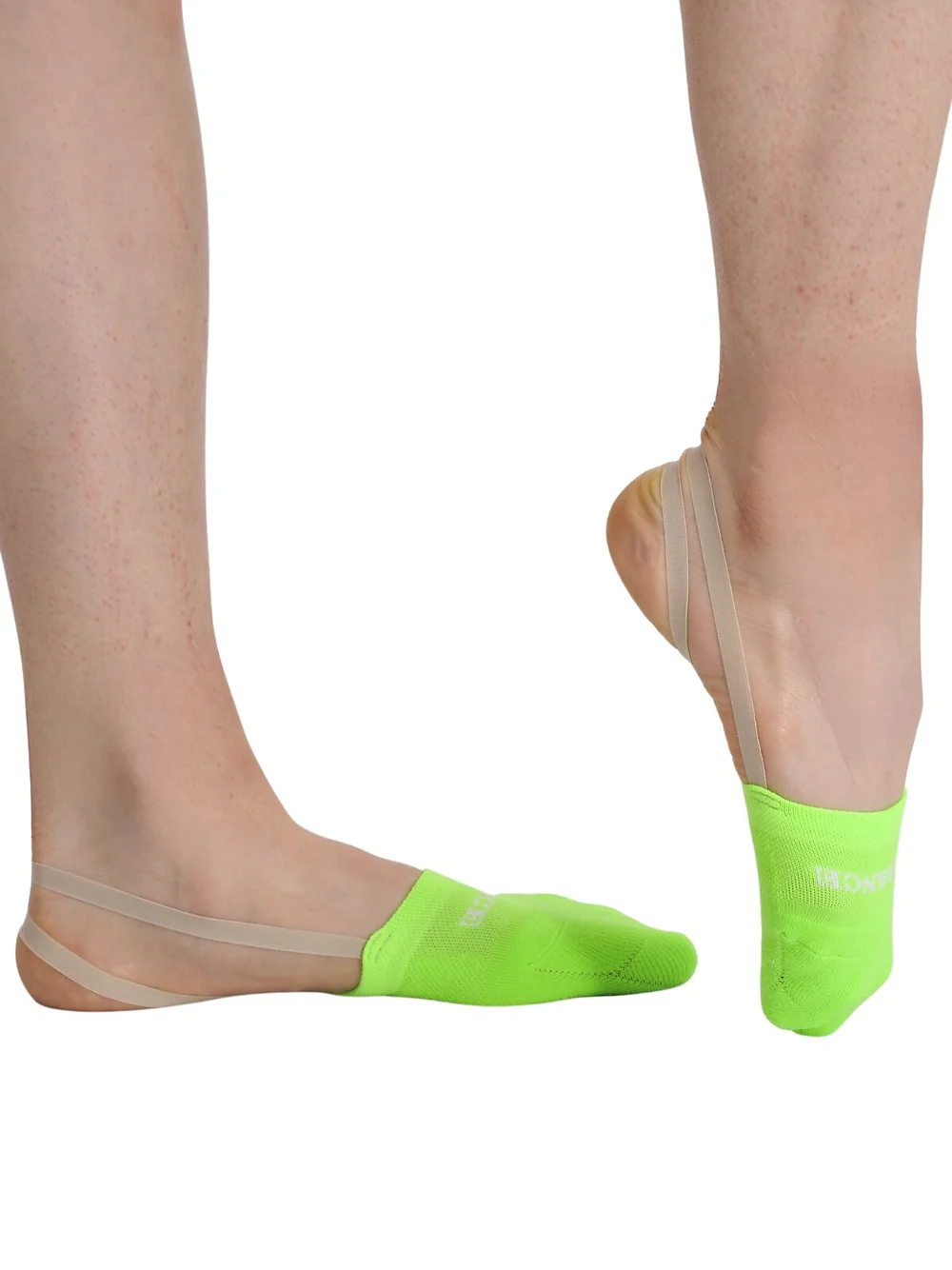 Mezzepunte da ginnastica ritmica elasticizzate, due elastici. Aderiscono totalmente al piede. Disponibili nel classico color carne o come fantastiche mezzepunte fluo in vari colori.