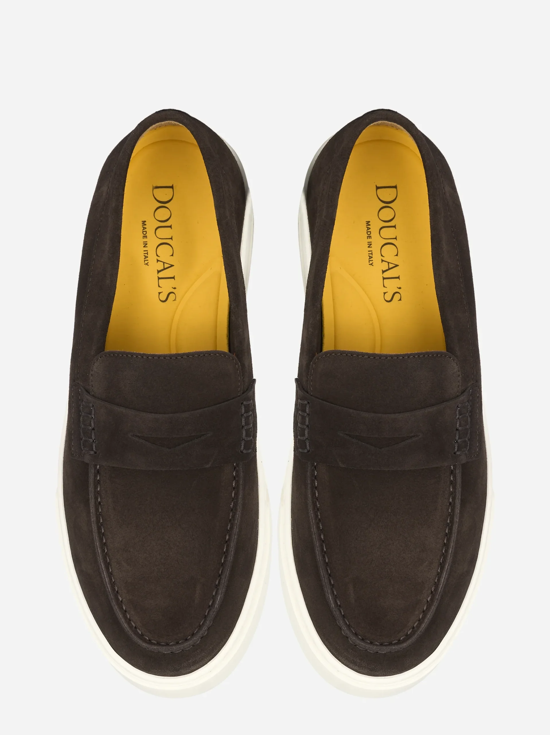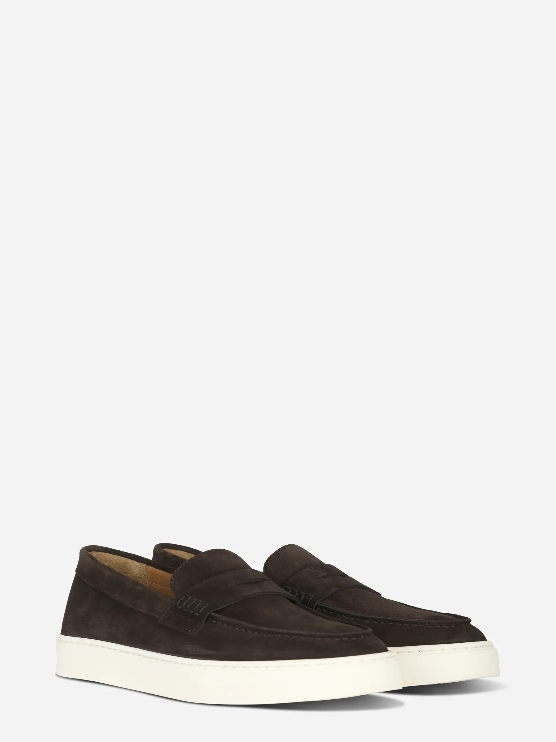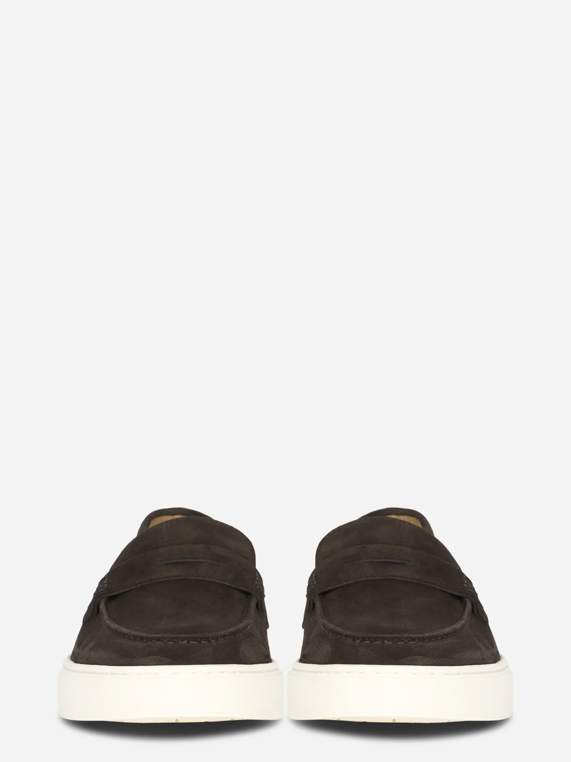 ITEM INFO Mocassino in camoscio colore marrone Design pulito con mascherina frontale Cuciture a vista tono su tono Interno foderato in pelle Suola in gomma chiara, leggera e confortevole Ideale per look casual e smart-casual Composizione: 100% Pelle scamosciata Suola: Gomma Made in Italy