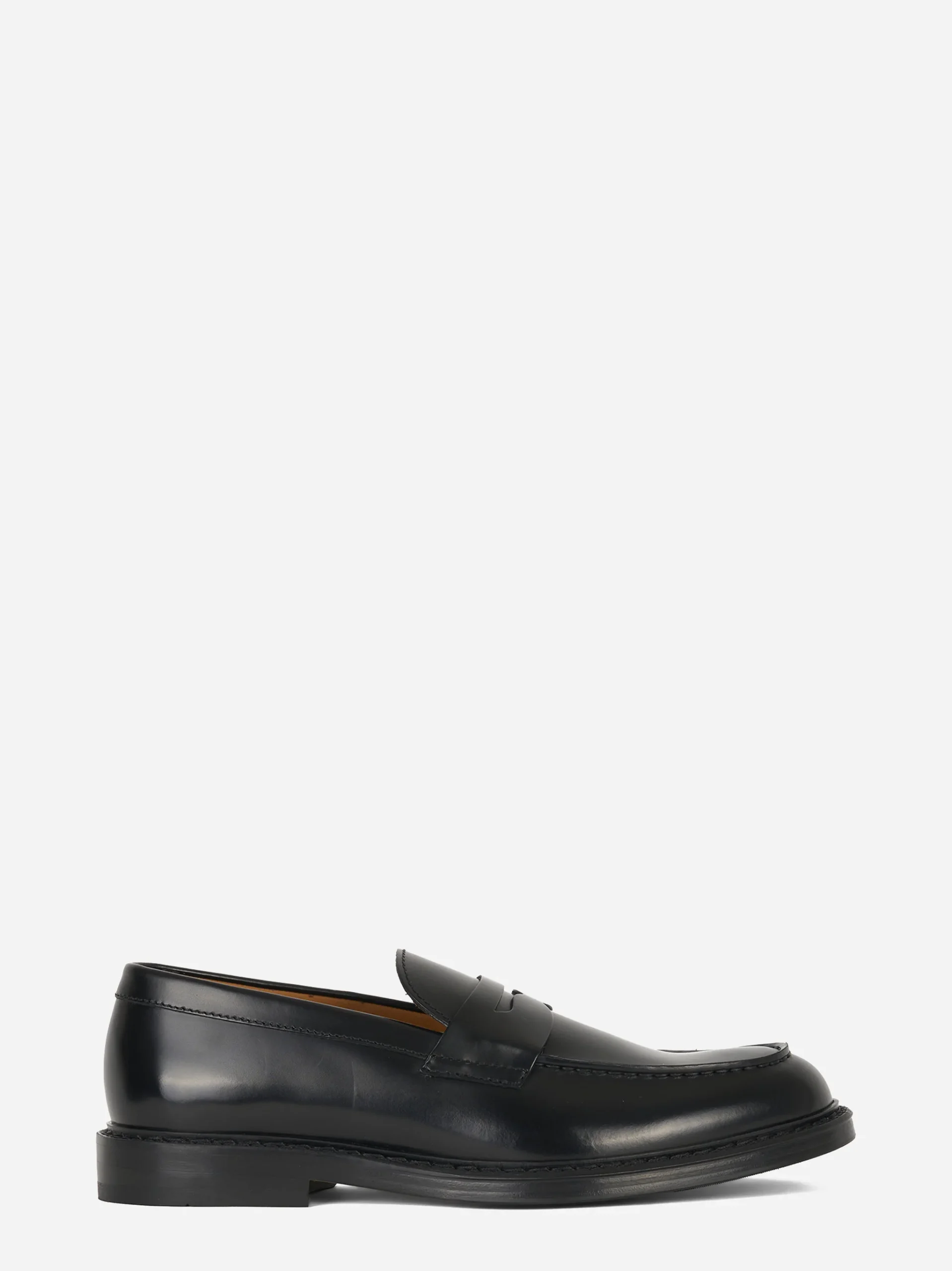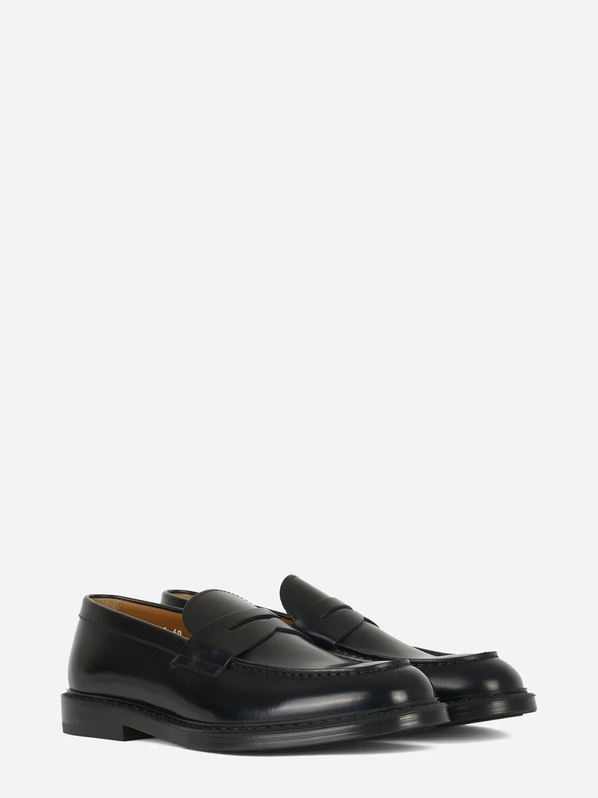 ITEM INFO Mocassino uomo in pelle liscia nera Design classico con mascherina frontale Fondo in cuoio con tacco basso Profili rifiniti con cuciture a vista Struttura leggera e versatile Calzata slip-on facile e confortevole Ideale per abbinamenti eleganti e casual Composizione: 100% Pelle Made in Italy