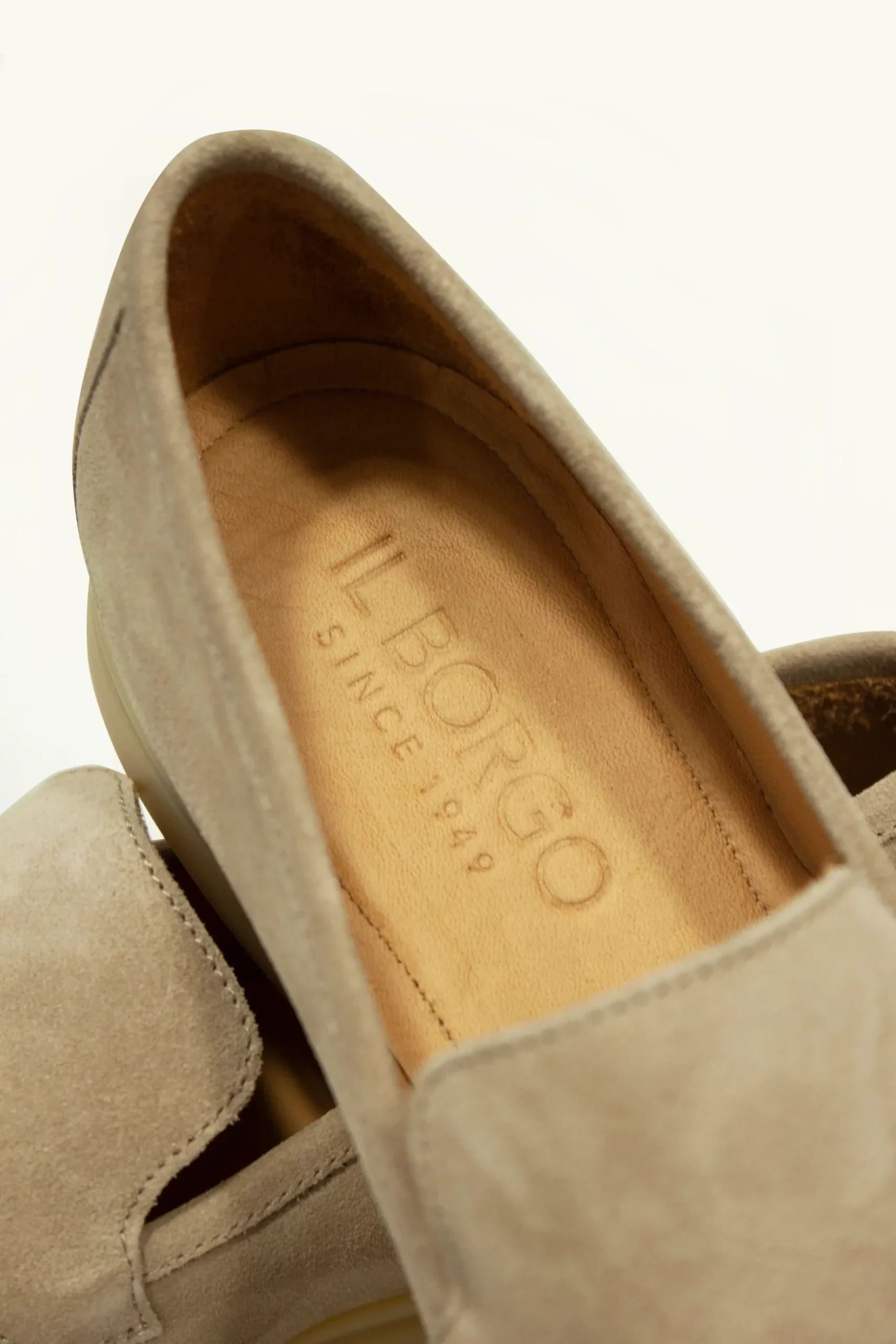 Questo elegante mocassino รจ realizzato in pregiato suede, un materiale che conferisce un tocco di raffinatezza al tuo look. La sua texture morbida e vellutata dona un aspetto sofisticato e allo stesso tempo versatile, perfetto per ogni occasione.