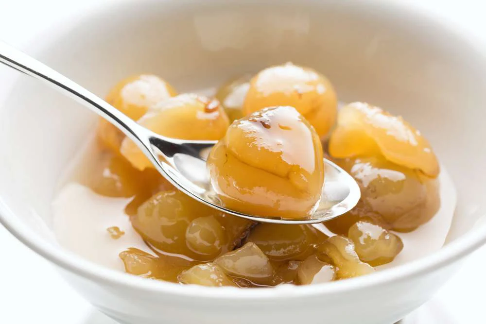 Vasetto da 110 grammi. Castagne candite, immerse nel loro liquido di governo zuccherino con aggiunta di aroma naturale di senape per un prodotto dal carattere intenso. La consigliamo con:gorgonzola, Grana Padano, pecorino, bolliti misti.
