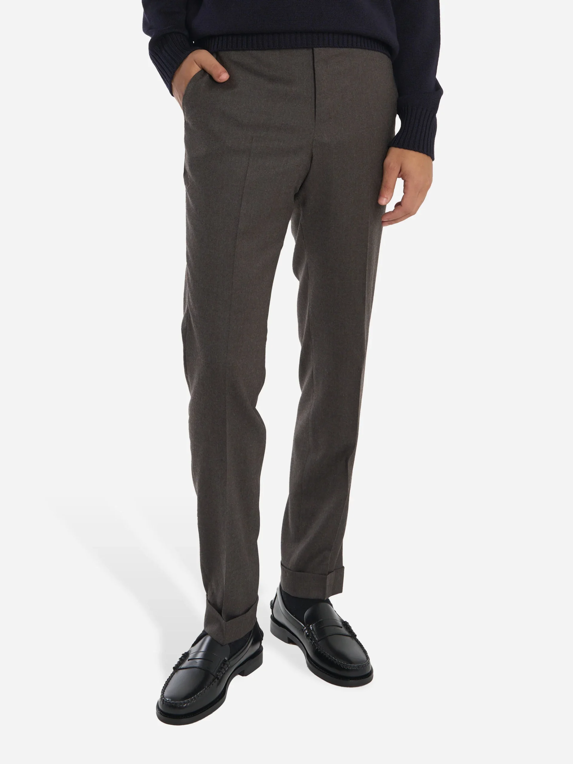 - Pantalone Master slim fit in lana stretch marrone scuro