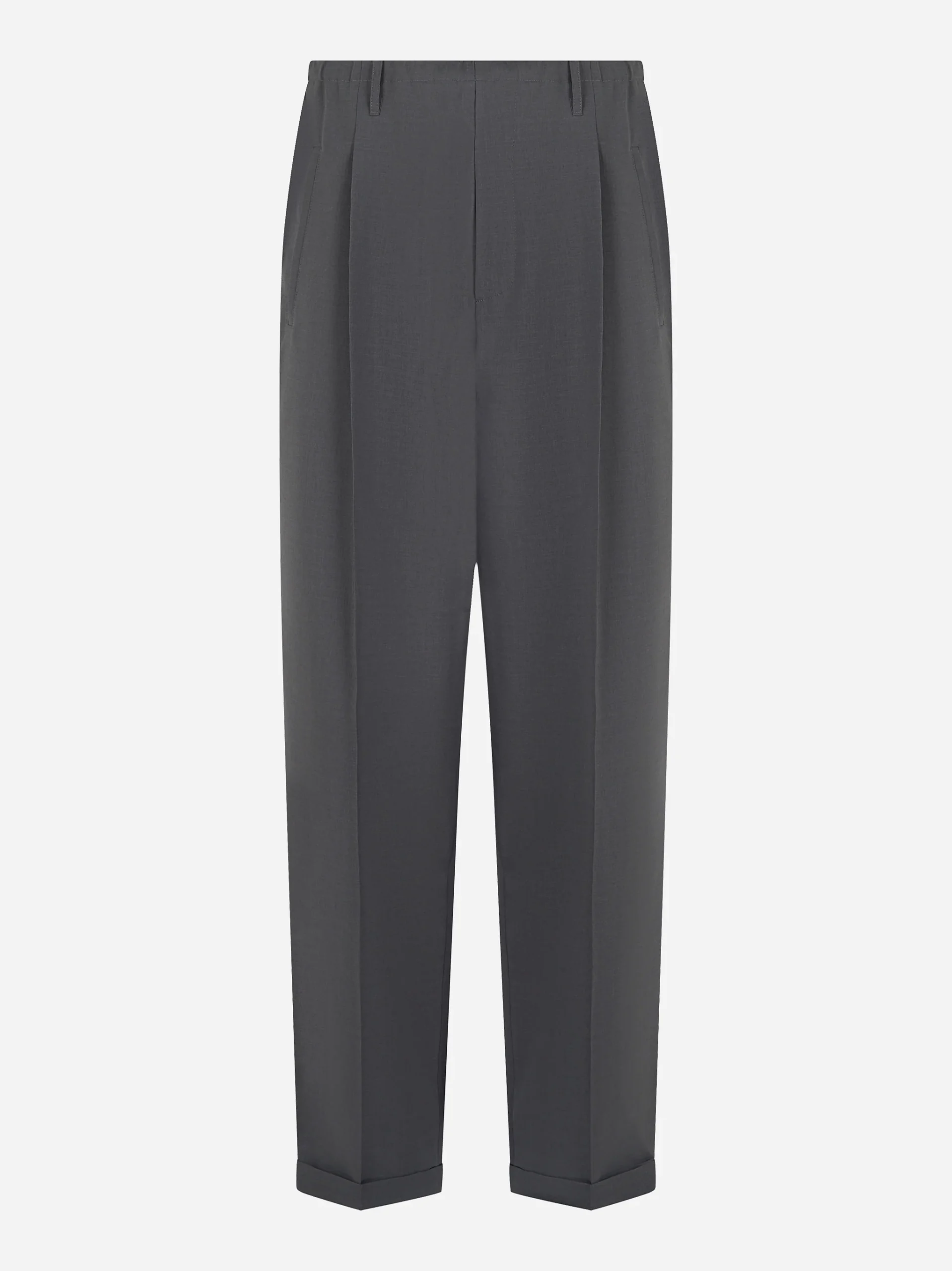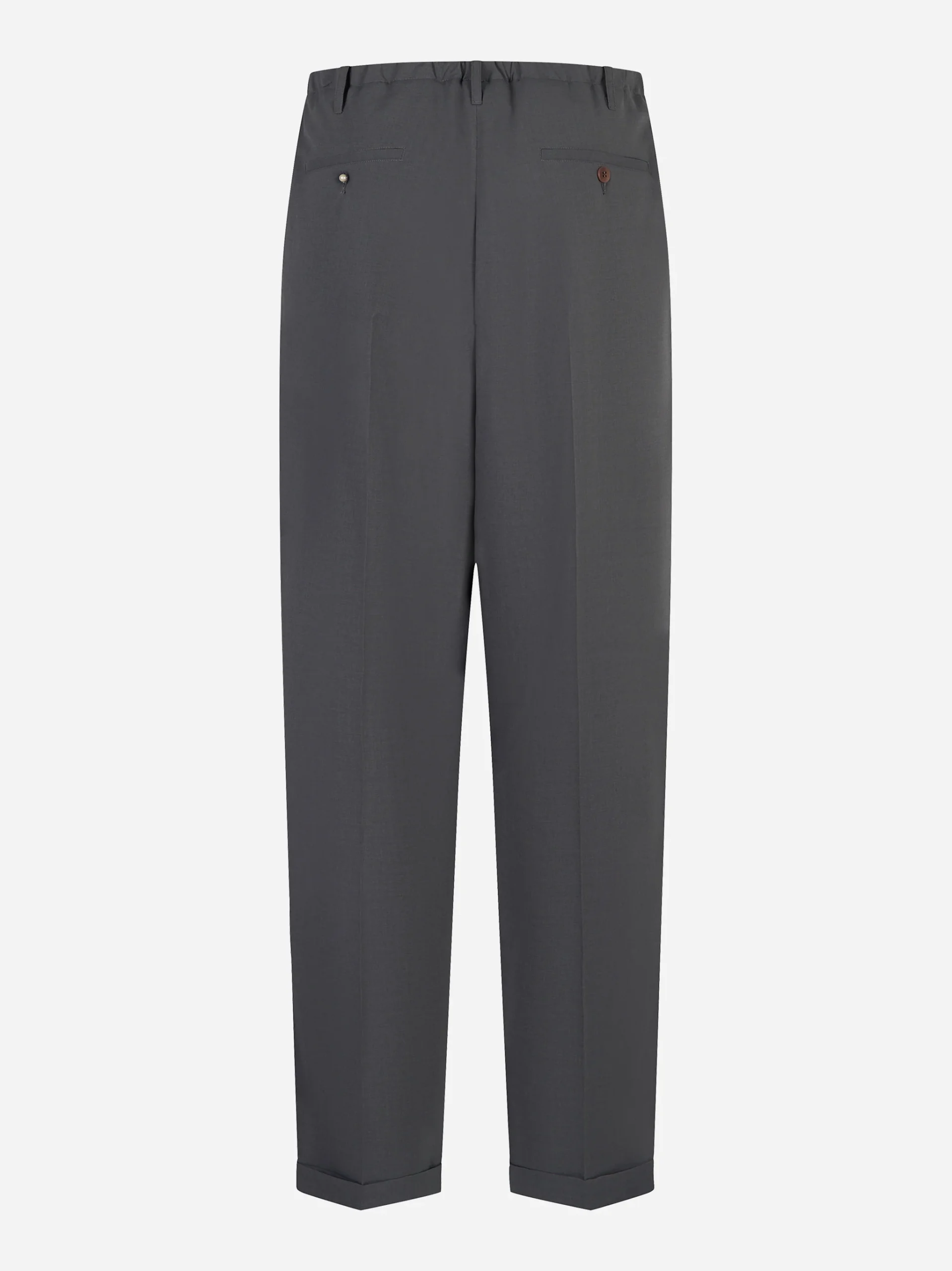 - Fit ampio con piega stirata e fondo con risvolto