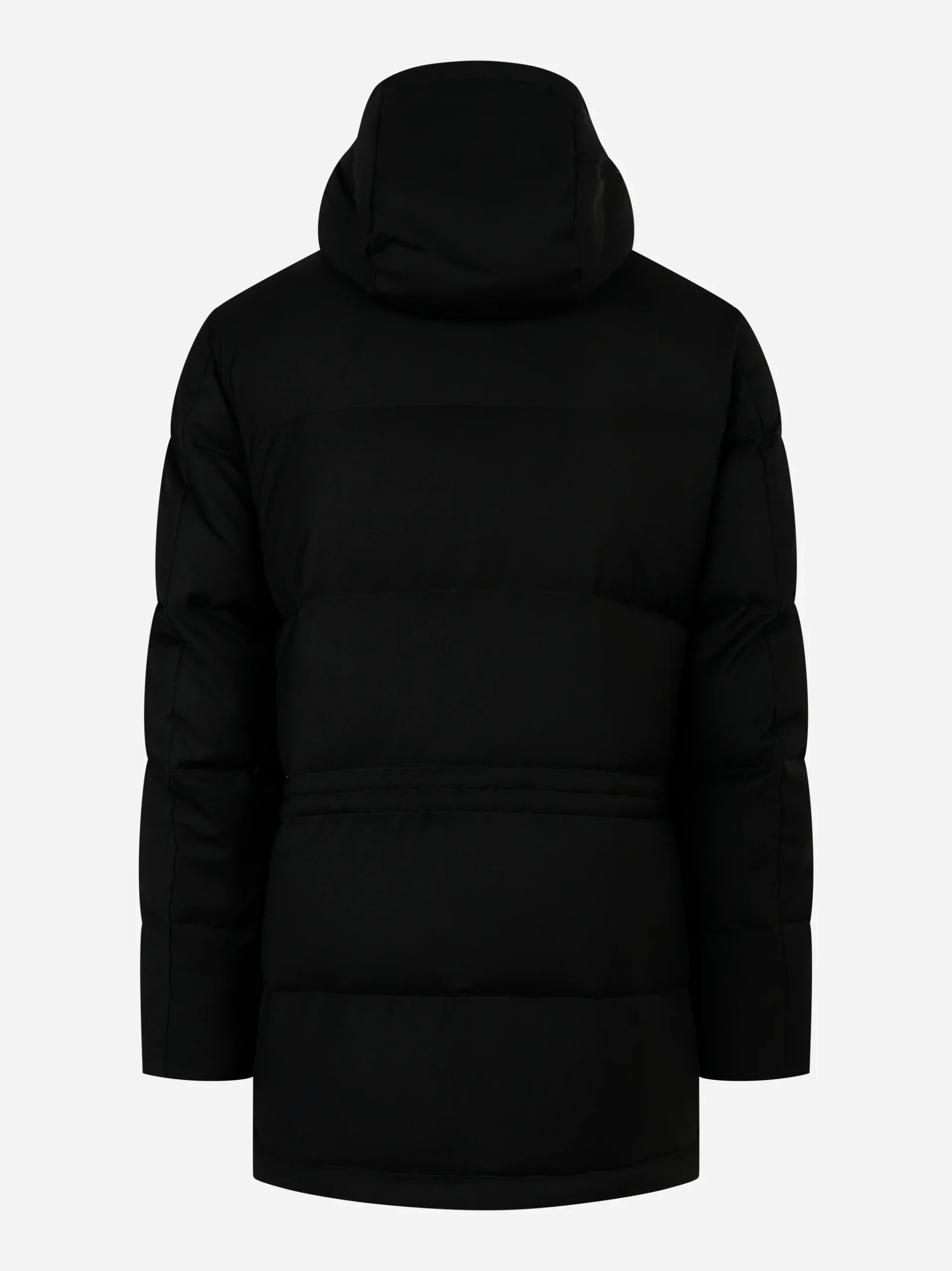 Piumino lungo con cappuccio Nero