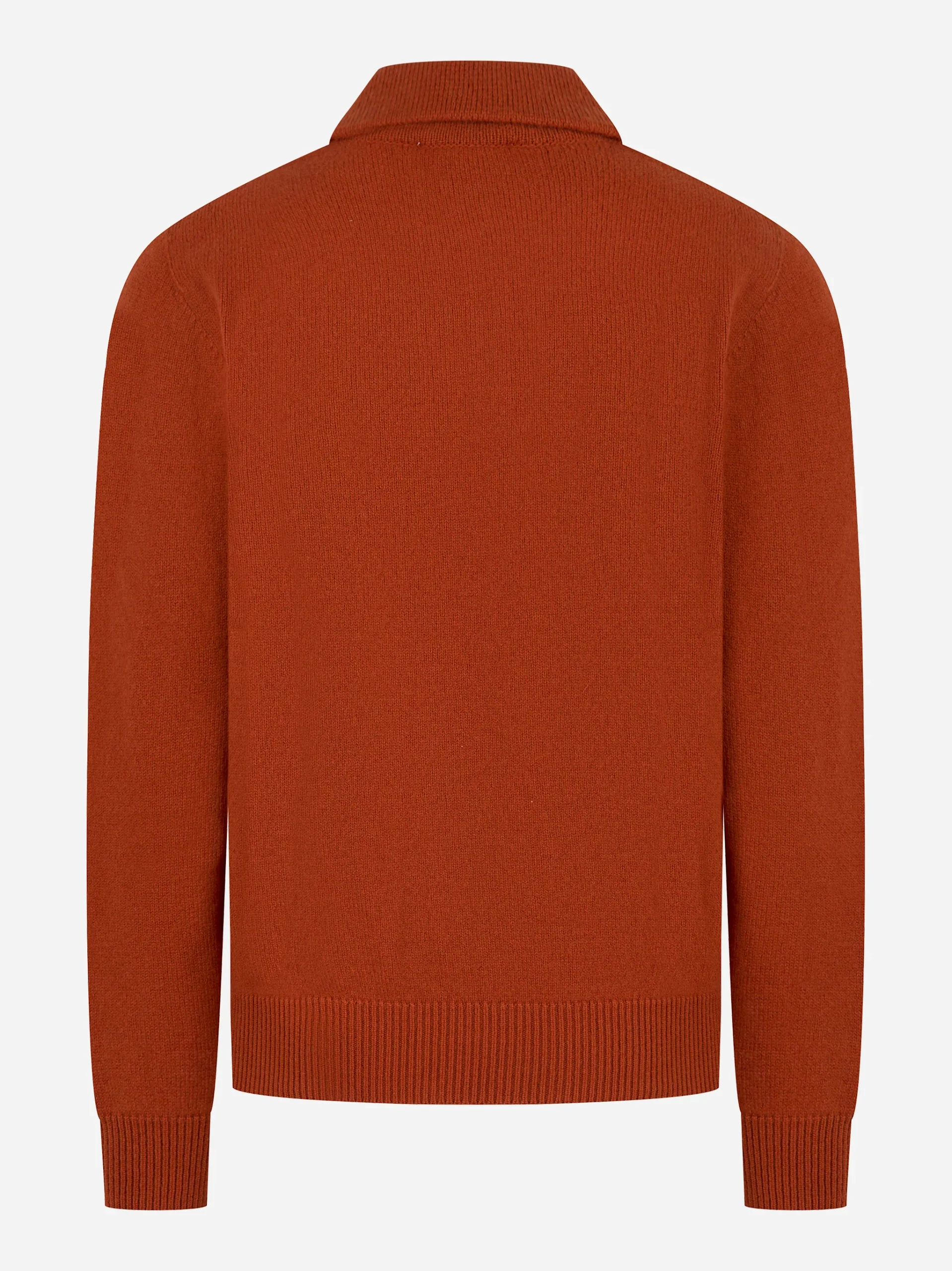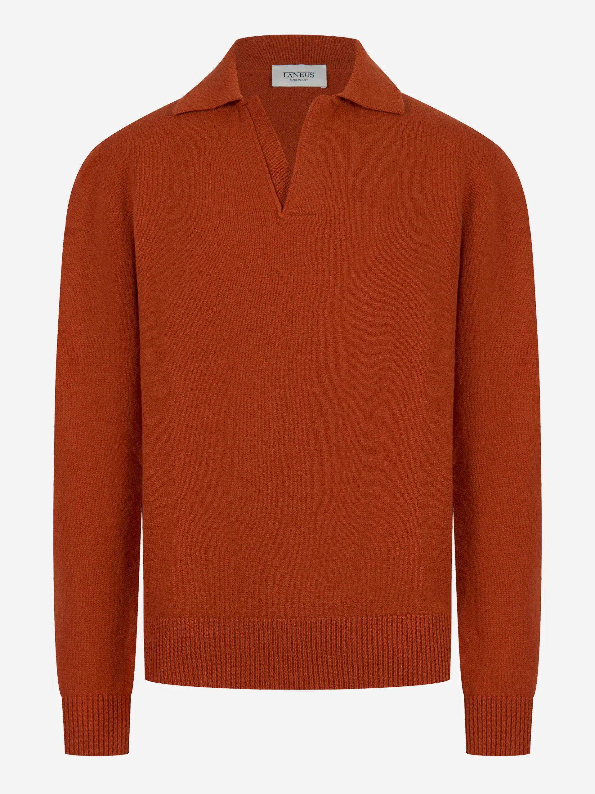 ITEM INFO Polo in maglia color ruggine Collo classico aperto senza bottoni Maniche lunghe con polsini a costine Bordi rifiniti a costine su fondo e polsi Vestibilità regolare Tintura in capo per un effetto leggermente vissuto Composizione: 90% Lana Merinos, 10% Cashmere Made in Italy TAGLIA E VESTIBILITÀ ▾ Model wears size 48 Model Height […]