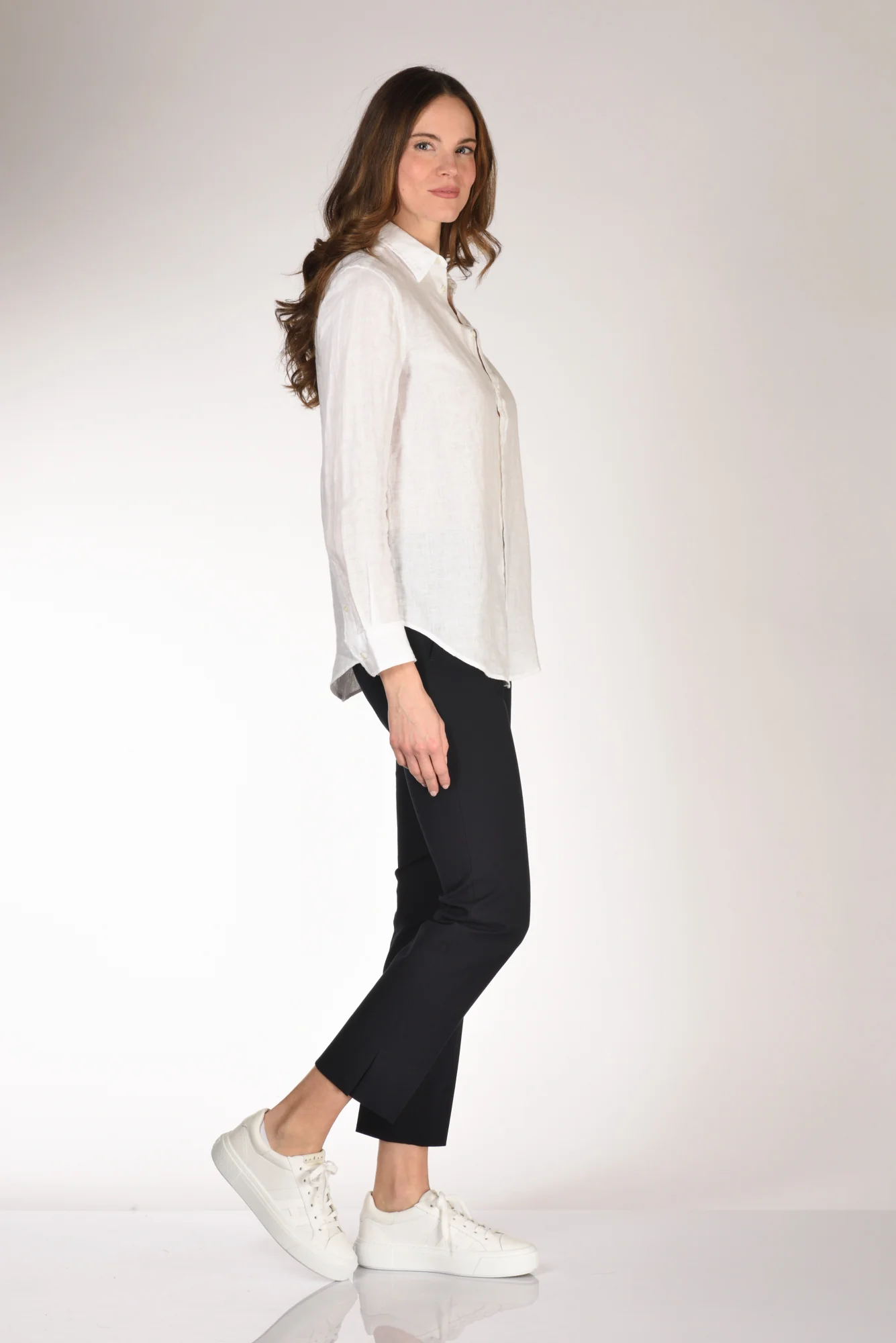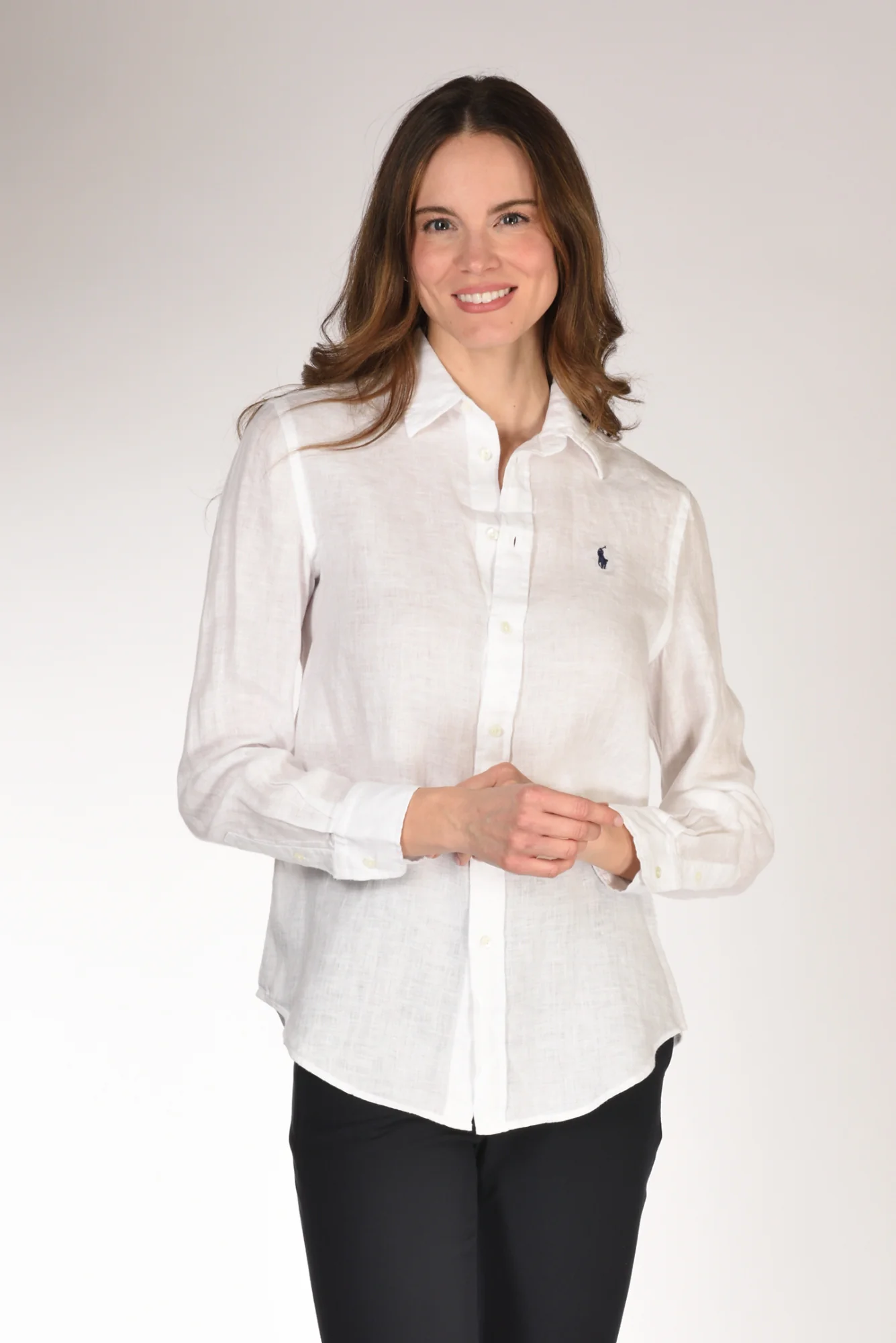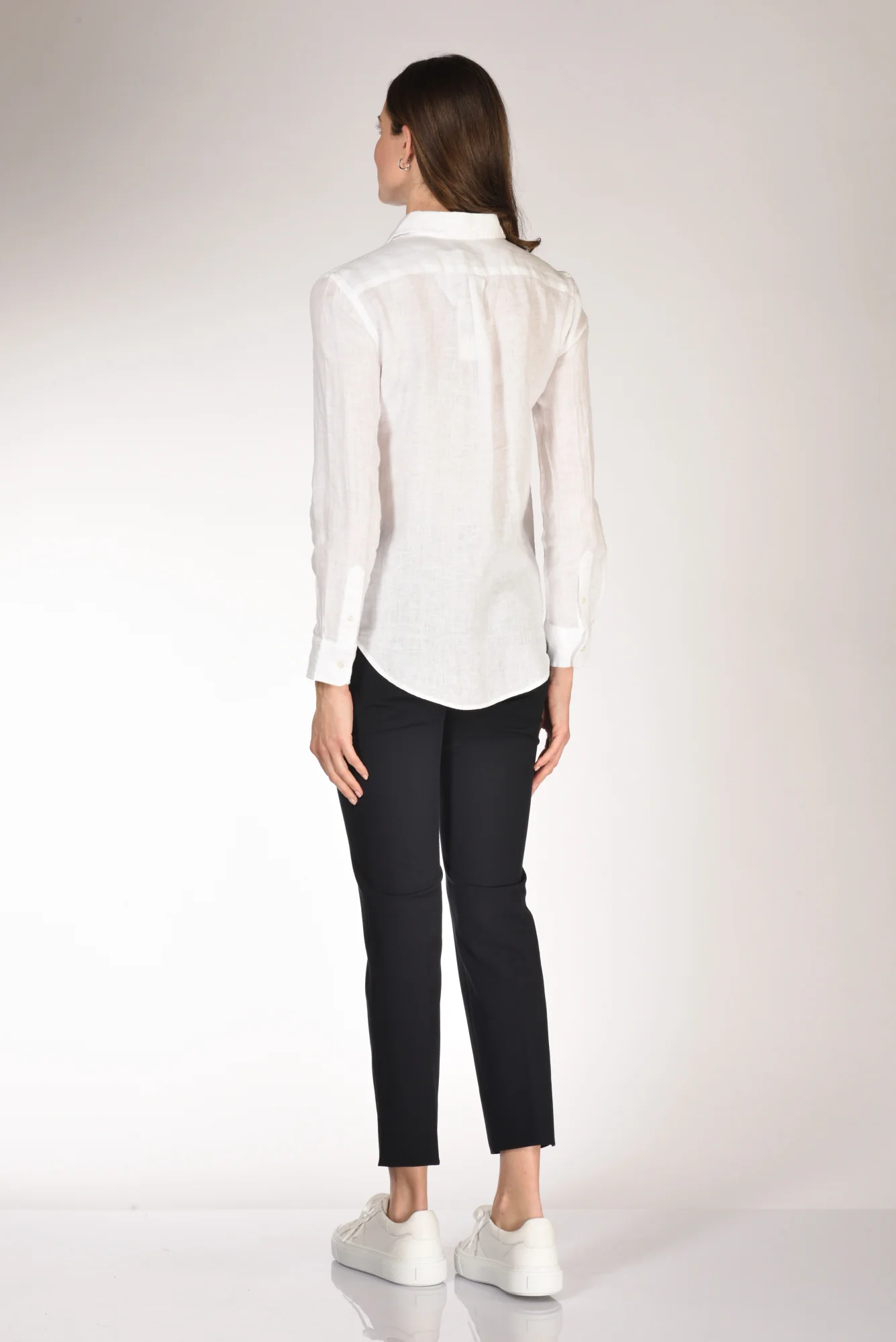 Camicia A Manica Lunga, Orlo Stondato, Logo Frontale Ricamato, Chiusa Da Bottoni Vista, Vestibilita’ Regular, Made In India, Composizione 100 Lino