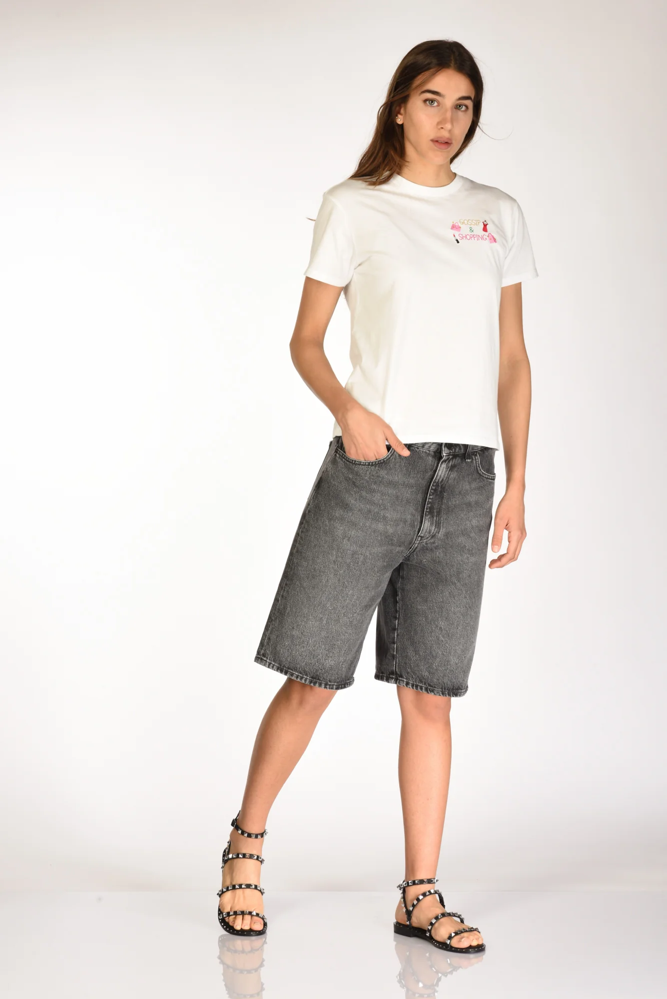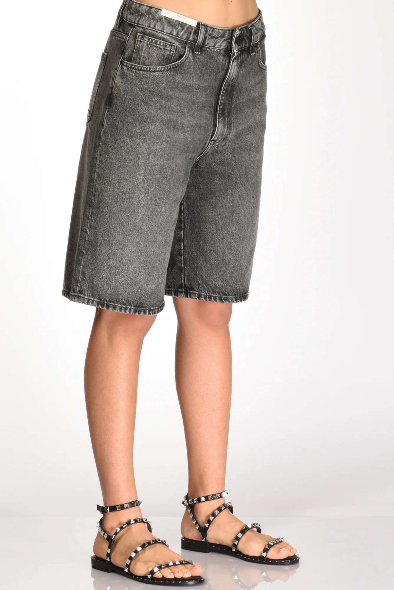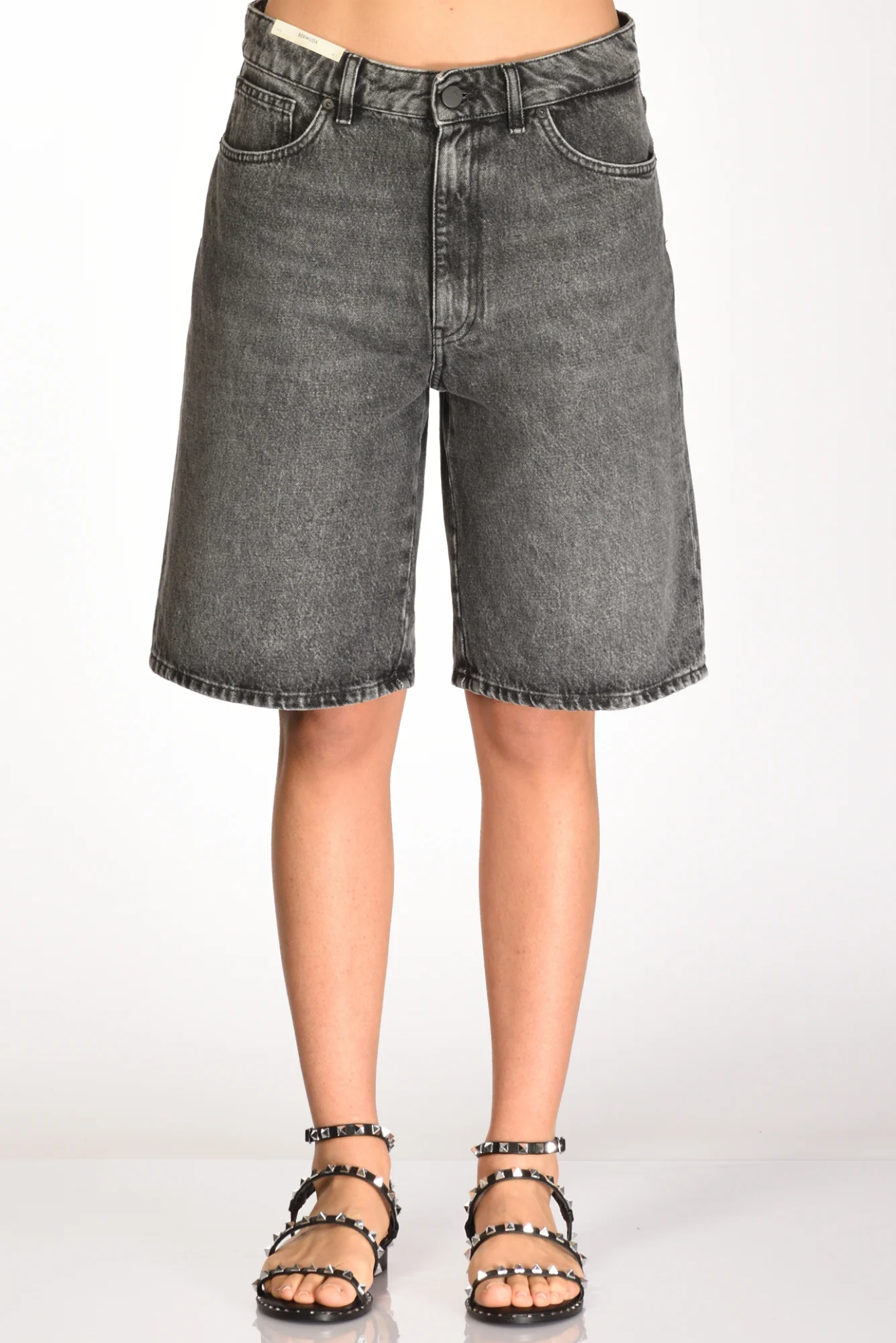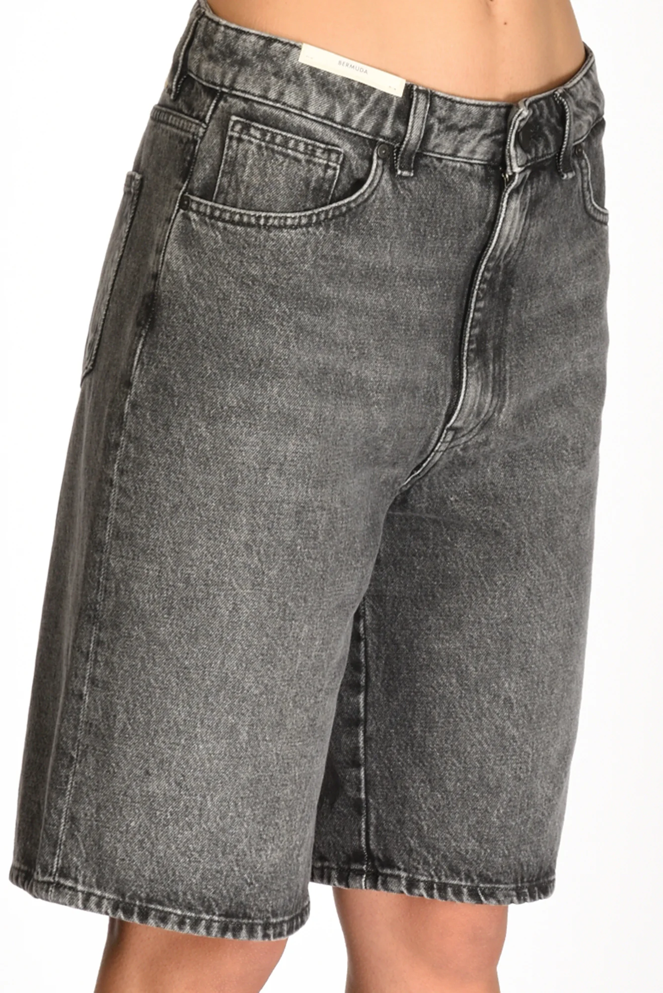 Bermuda 5 Tasche In Denim, Vita Alta, Passanti In Vita, Chiusura Zip Nascosta E Bottone Logato A Vista, Gamba Larga, Vestibilita’ Regular, Made In Italy, Composizione 100 Cotone