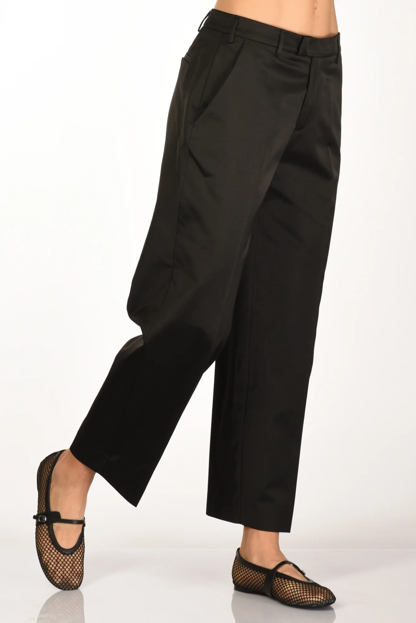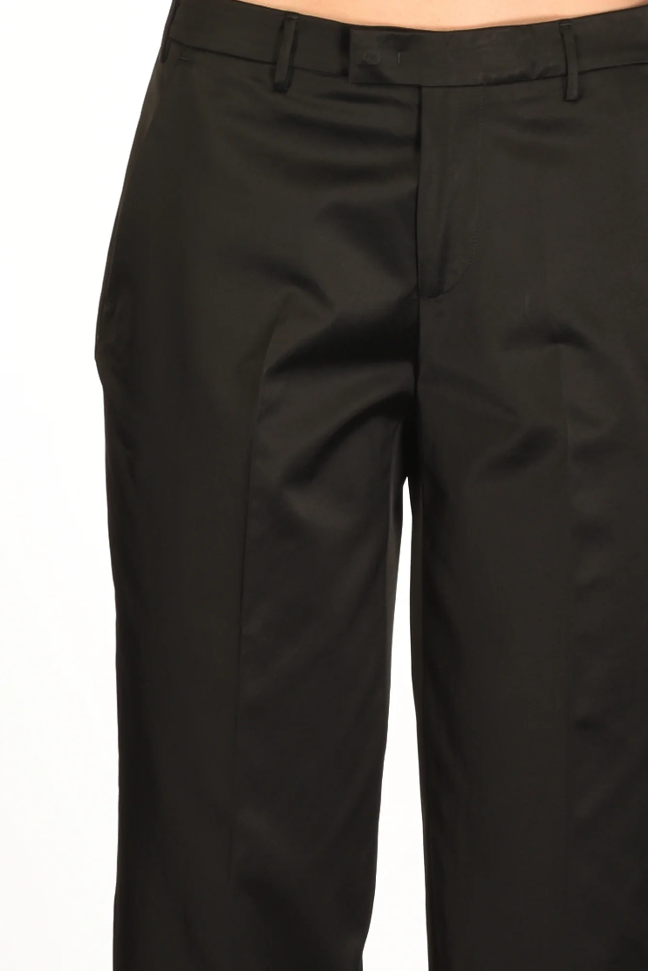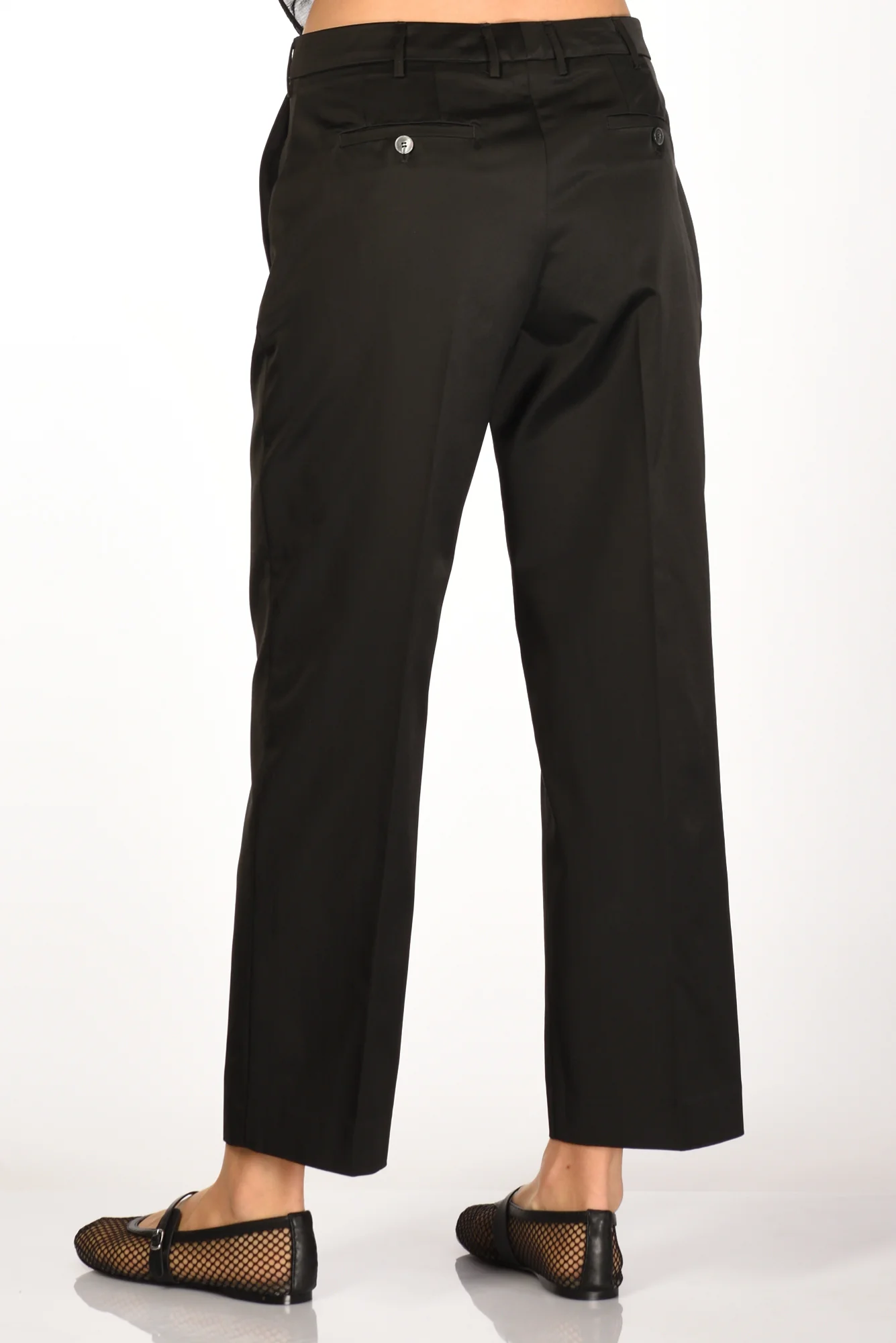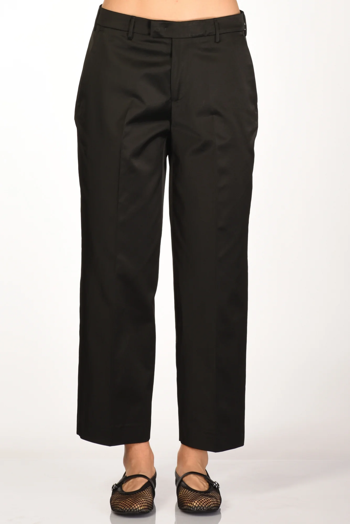 Pantalone Realizzato Cotton Satin Dall’effetto Semi Lucido, Vita Bassa, Gamba Larga E Diritta, Tasche Alla Fracese, Tasche Posteriori A Filetto Con Bottone, Chiusura Zip E Gancio Metallico Nascosti, Vestibilita’ Regular, Made In Italy, Composizione 51 Cotone 49 Viscosa